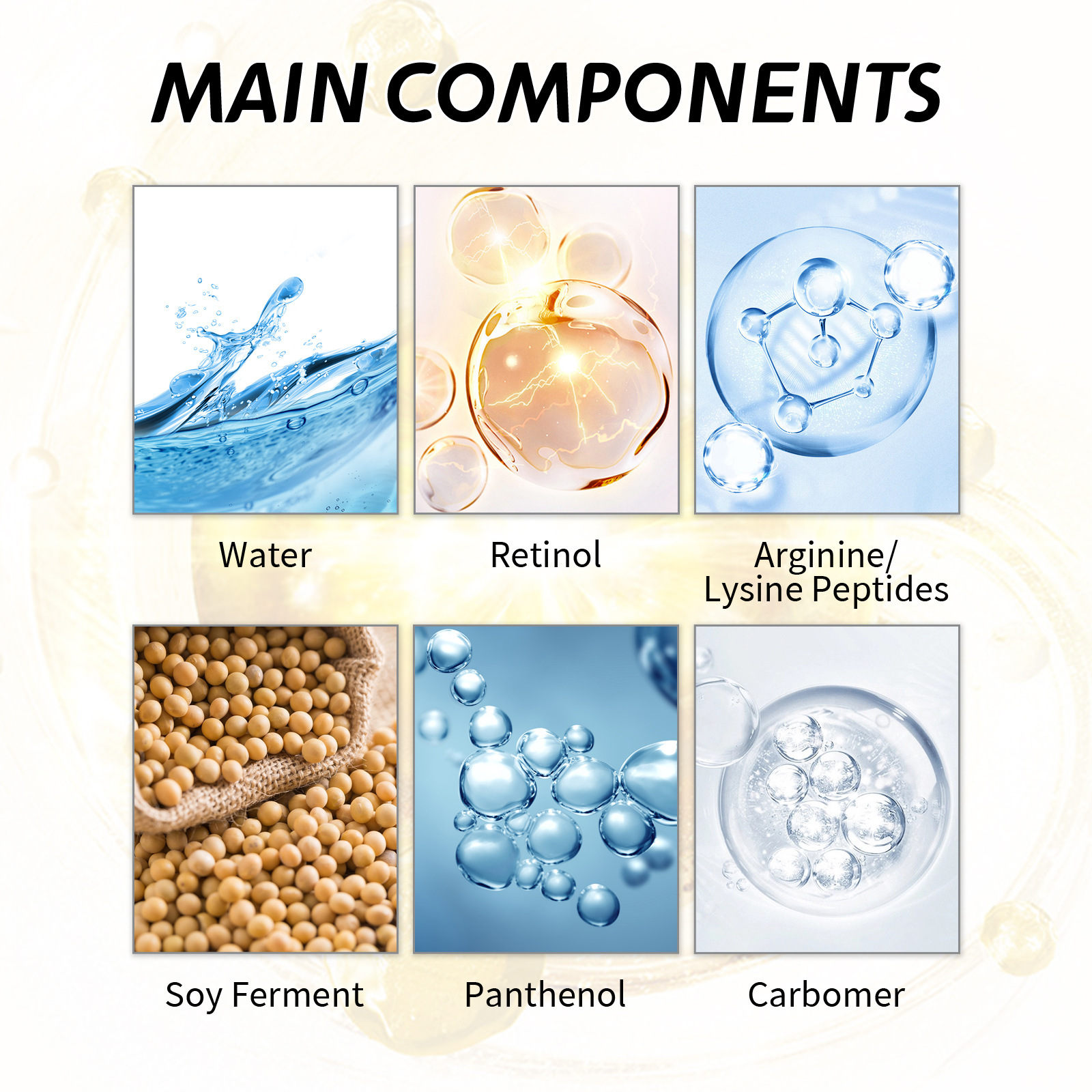 Ingredients: Water, retinol, arginine/lysine polypeptide, soybean fermentation, panthenol, carbamide