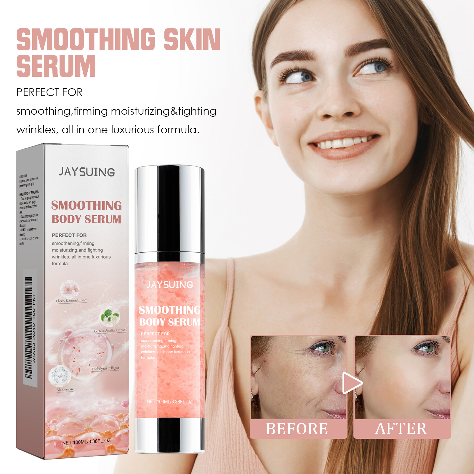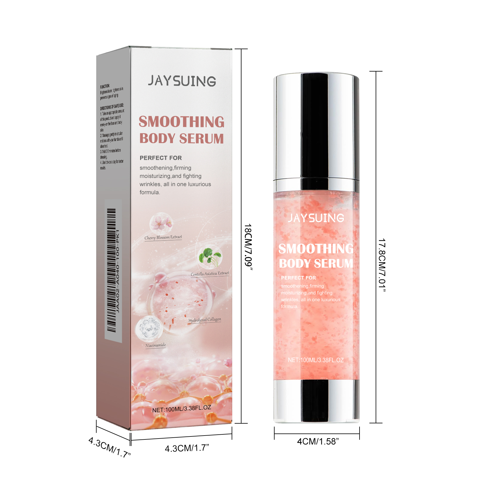 Our Smoothing body essence contains cherry blossom extract, Centella asiatica extract and hydrolyzed collagen. It has a constitution that can easily darken and is hard to turn white again. The skin starts to wrinkle, becomes loose and loses collagen. Dry skin exposed to the sun for a long time without timely care becomes dry and flaky. If the pores are not cleaned properly, dirt will accumulate, leading to enlarged pores and rough skin. Its usage is very simple: Take an appropriate amount of this product and apply it evenly to the face and all over the body. Gently massage in circular motions with your hands until it is absorbed. Wait for 3 to 5 minutes before wearing clothes. It works better to use it twice a day. Skin armpit whitening, moisturizing to relieve dryness, fresh and lustrous, hydrated and plump, deeply penetrating the skin, reducing wrinkles and skin wrinkling.
