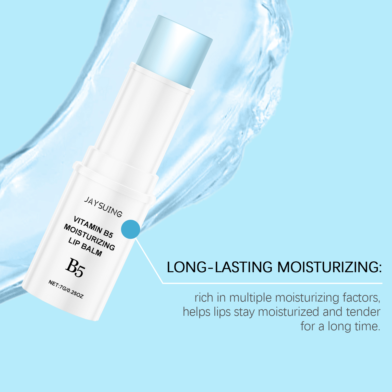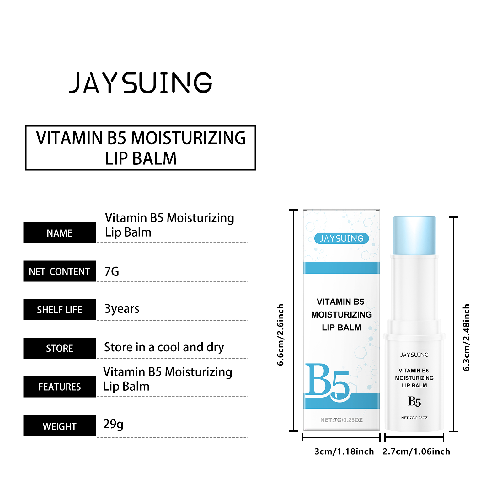 Our Vitamin B5 moisturizing lip balm contains glycerin, Vitamin B5(panthenol), squalane. It can effectively moisturize the lip skin, maintain lasting moisture, and reduce lip dryness. Fade fine lines and make lips look softer and smoother. Its application is simple: Clean and dry your lips. Apply the product evenly to your lips and wait for it to be absorbed and moistened. And can texture light, not thick not greasy, keep lips fresh.