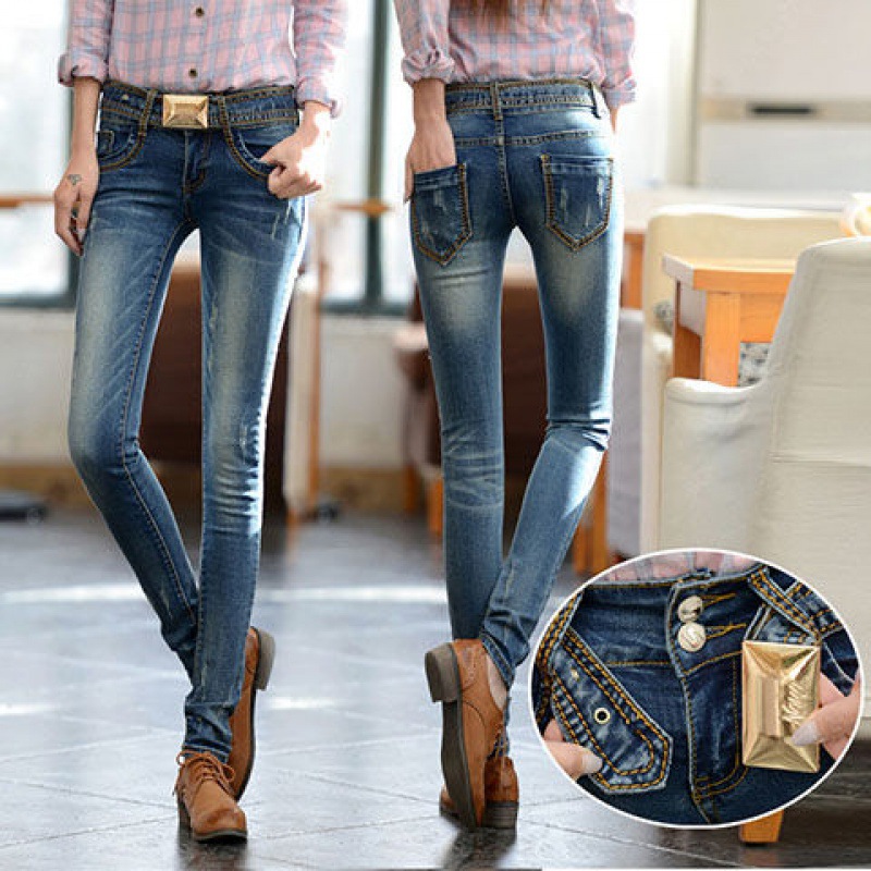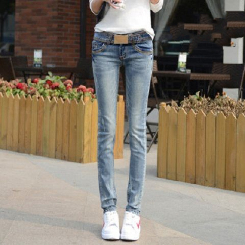 Jeans Feet Pants Tight-fitting Low-rise Light-colored Women's