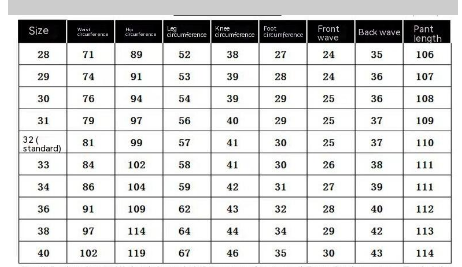 Size: 28, 30, 32, 34, 36, 38, 40, 29, 31, 33