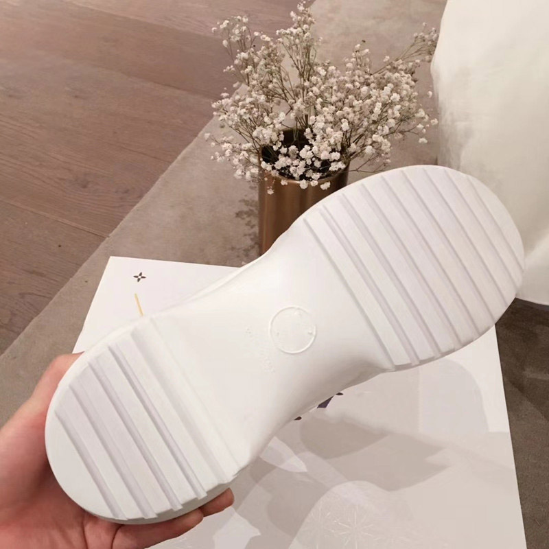 Popular elements: muffin heel, waterproof table, leather splicing, candy color