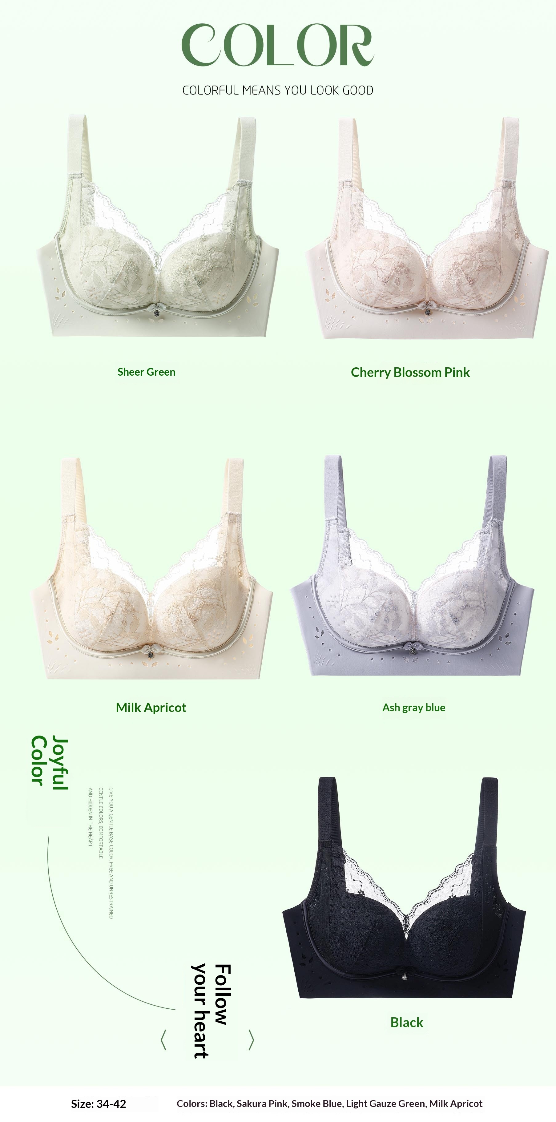 Sizes: 34BC, 36BC, 38BC, 40BC, 42BC