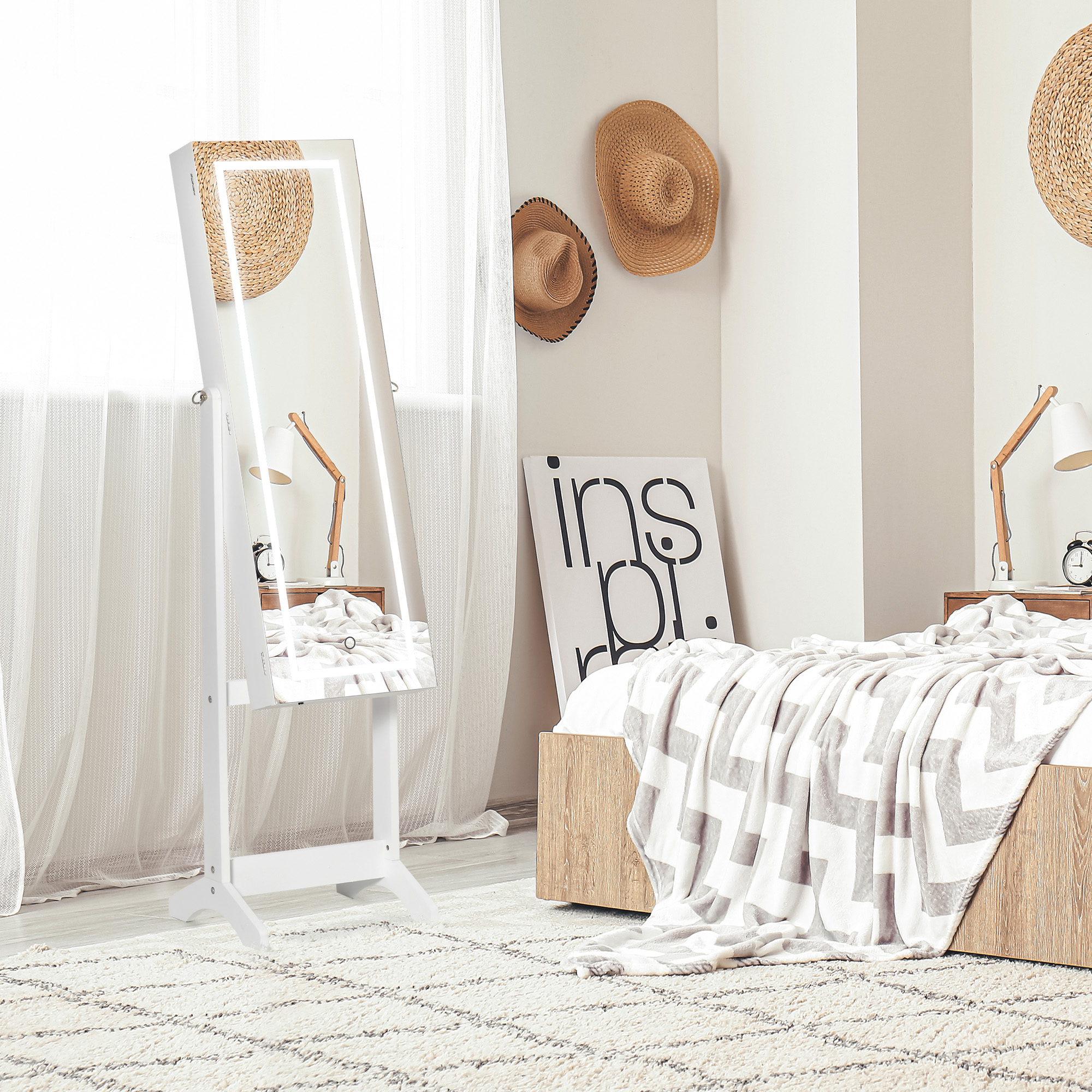 Jewellery Cabinet With LED Light, Lockable Jewellery Organiser With Full-Length Mirror For Bedroom Dressing Room, White