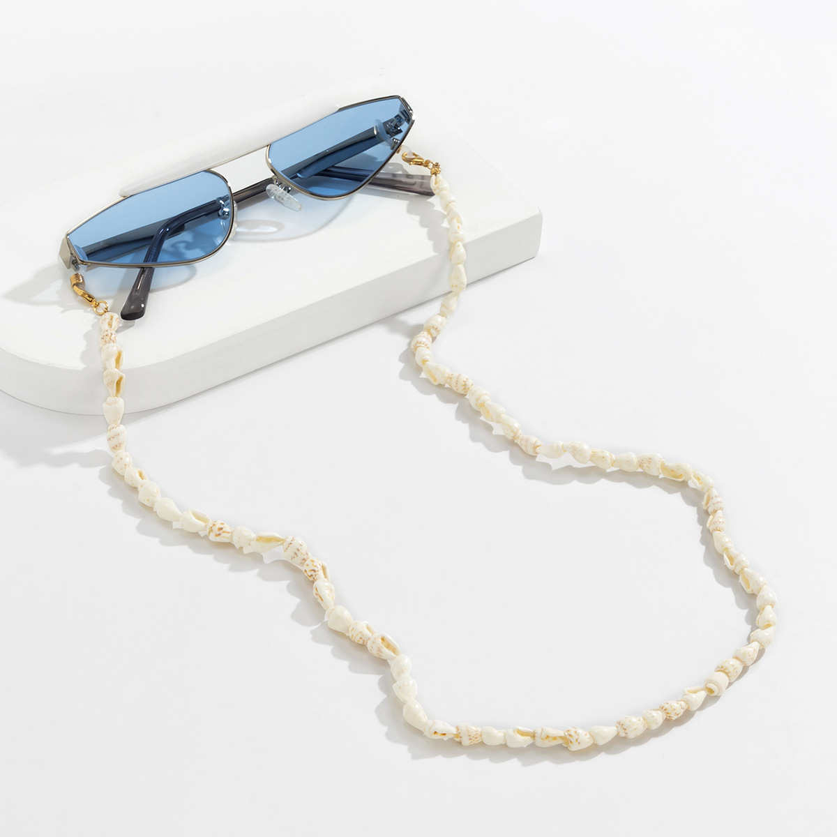 Product Details: Material: ShellModel: Glasses chainType: Glasses chainColor: white 0098Packing list:Shell decoration chain X1