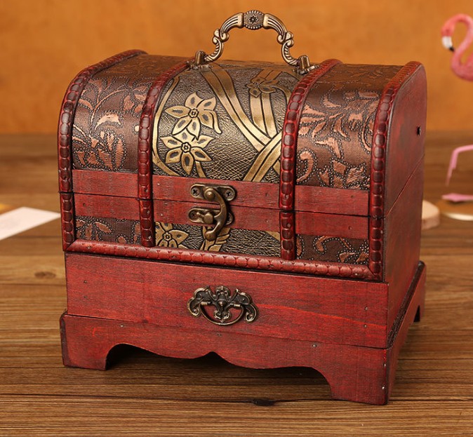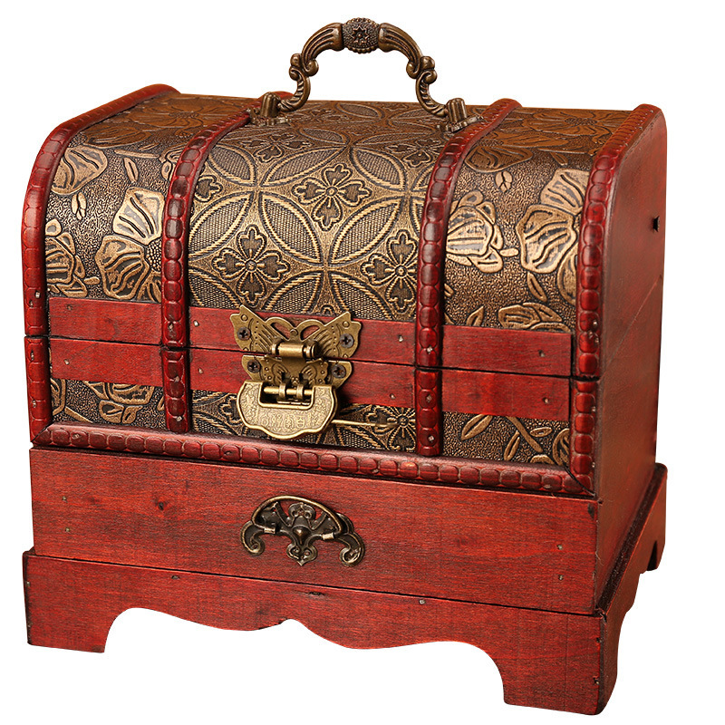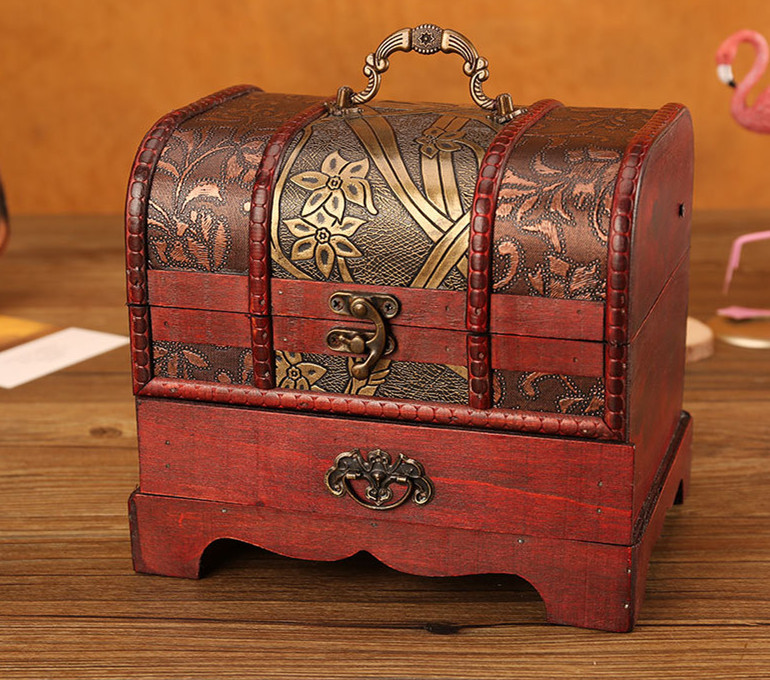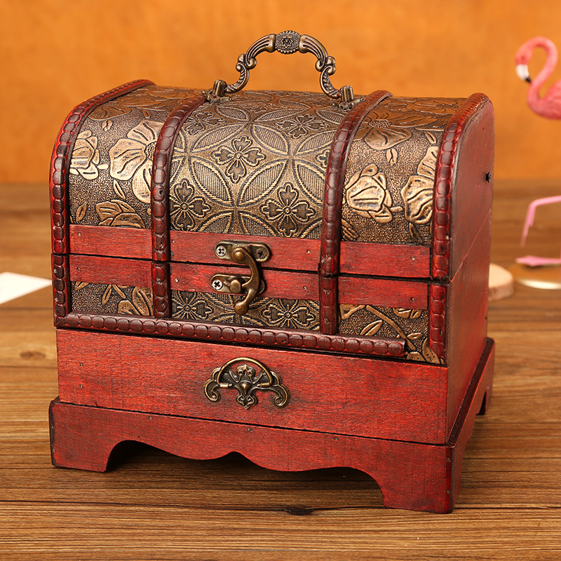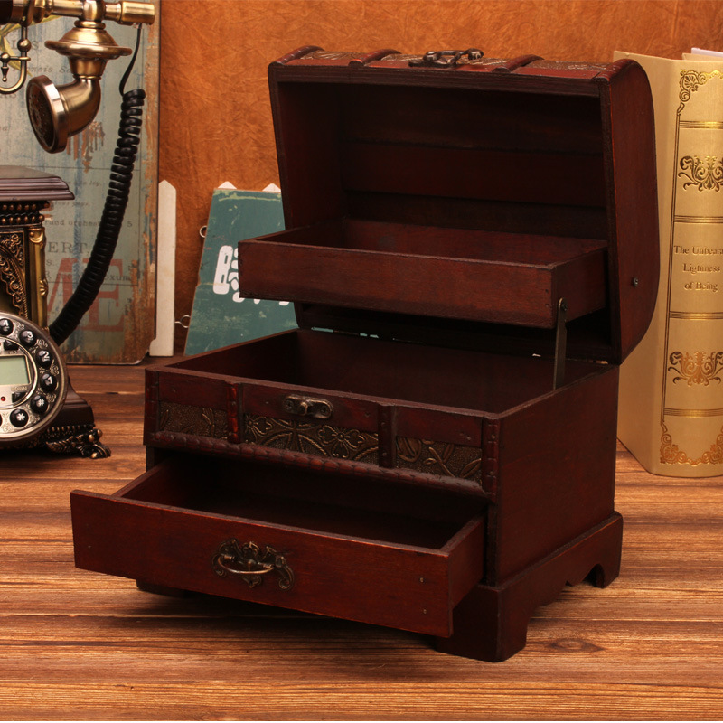 This beautiful antique storage box will be an elegant decoration of any room. Perfect to organize jewelries, small sundries and important things. This box is pure handmade, and made of high quality wood and metal lock. It has three drawers for you to storage different things seperately.