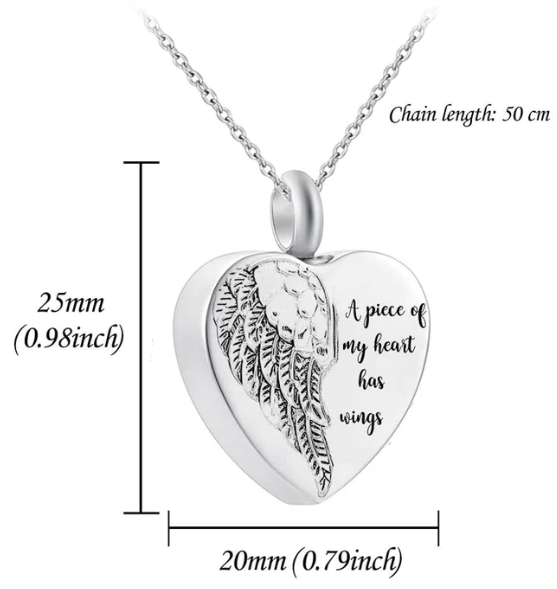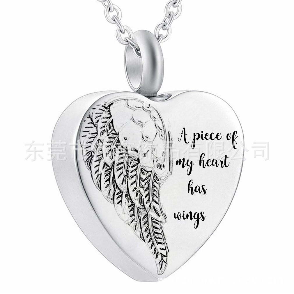 Jewelry Commemorative Pet Ashes Necklace Stainless Steel Heart-shaped Angel Wings Urn Pendant