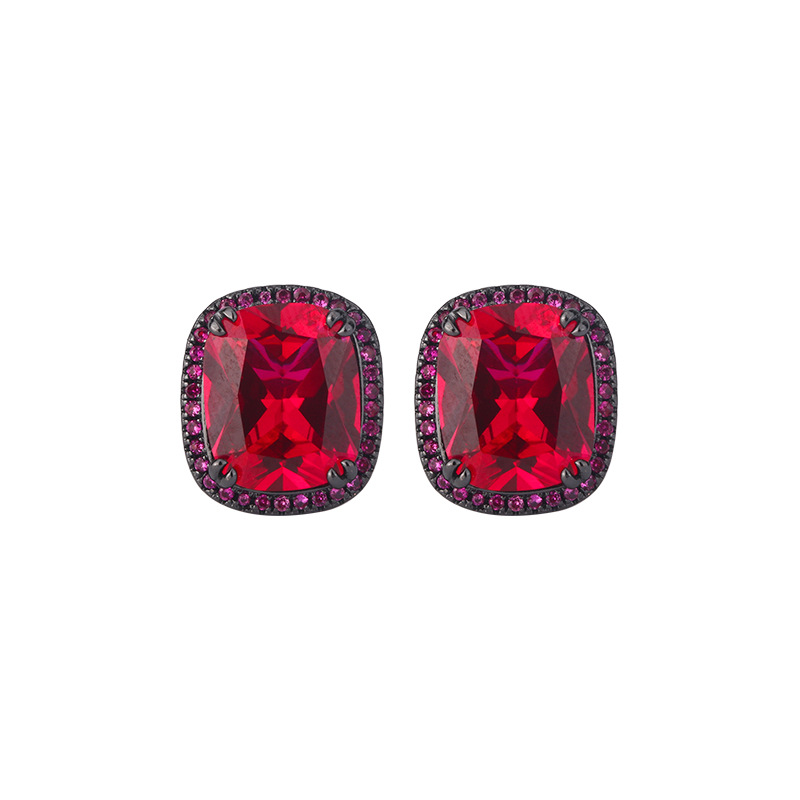 Color: Black Gold red corundum pendant with chain, Black Gold red corundum ring, Black Gold red corundum stud earrings