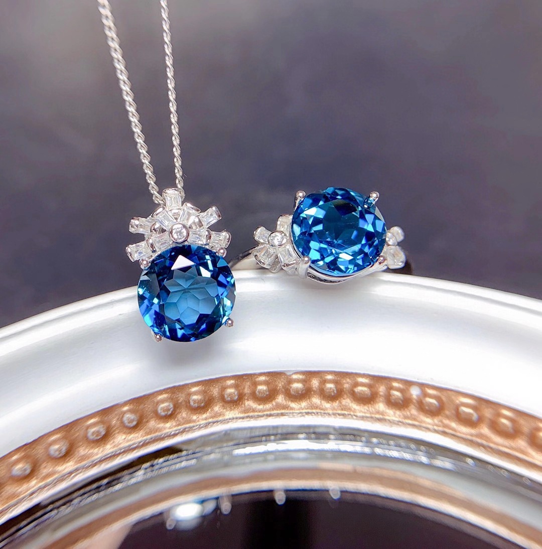 Color: London blue ring [opening adjustable] 8mm, London blue pendant [without chain] 8mm, dark blue ring [opening adjustable] 8mm, dark blue pendant [without chain] 8mm