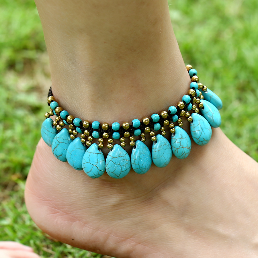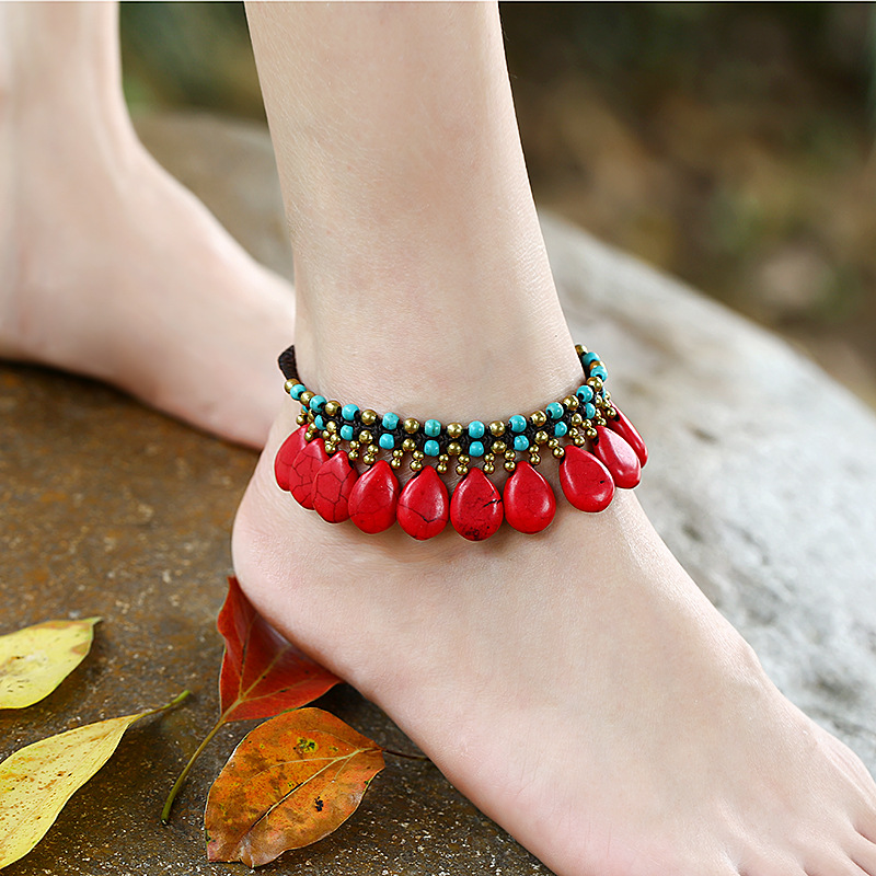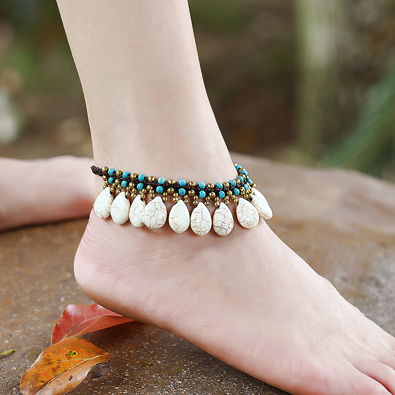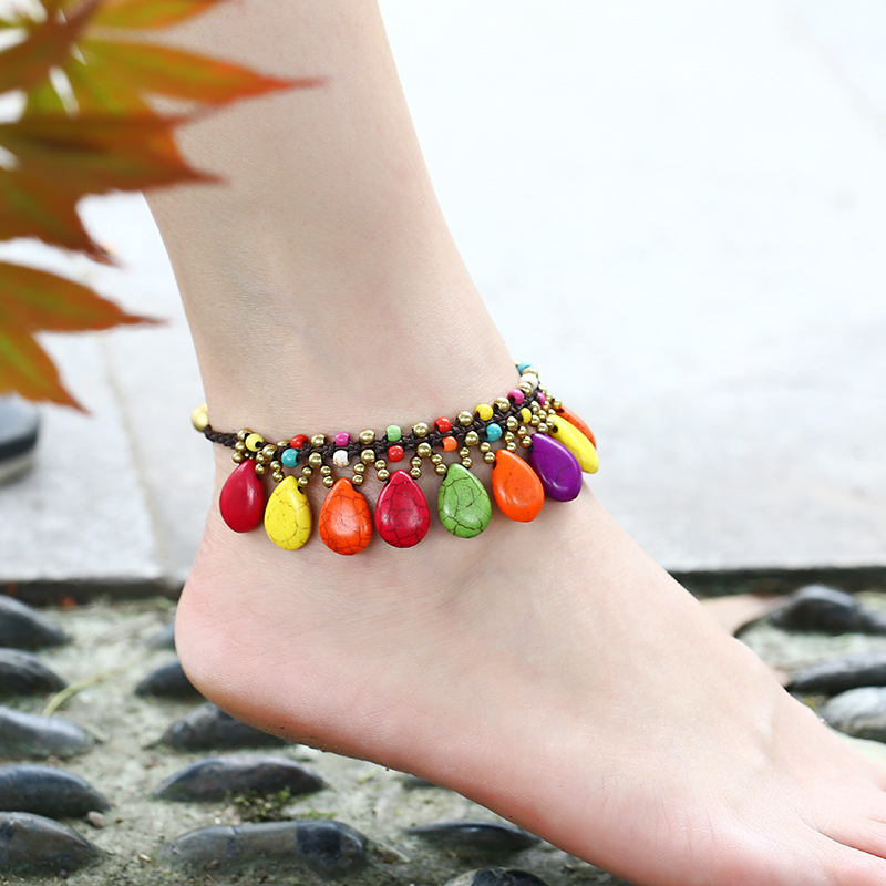 Jewelry Simple Fashion Bells Semi-Precious Stones Hand-Woven Retro Female Anklet