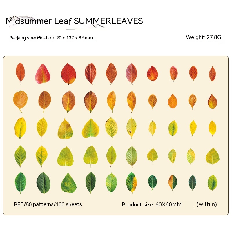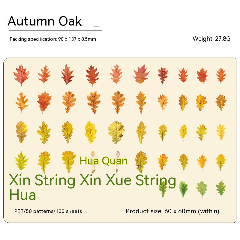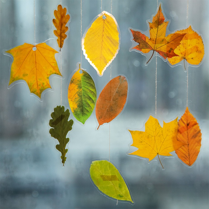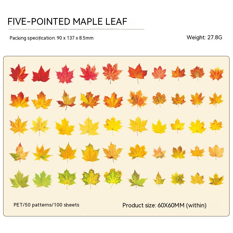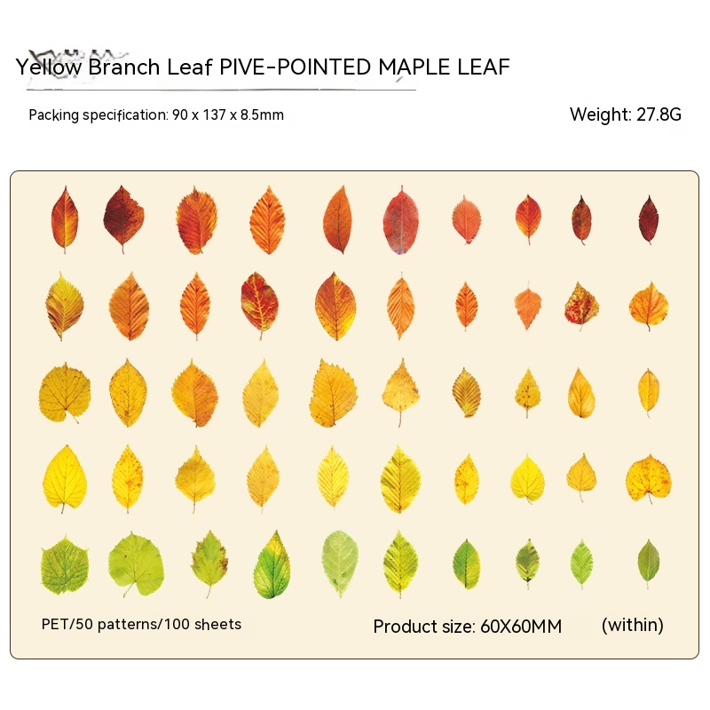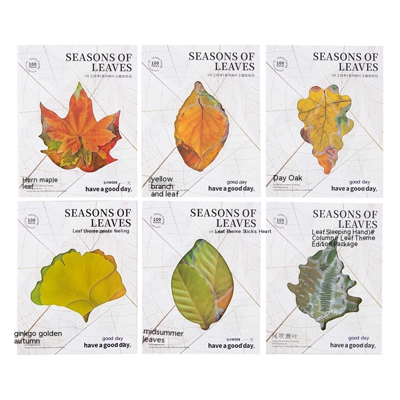 Color: 1 five-pointed maple leaf, 2 ginkgo leaves in golden autumn, 3 fern leaves in wind blowing, 4 yellow branches and leaves, 5 autumn oak trees and 6 summer leaves