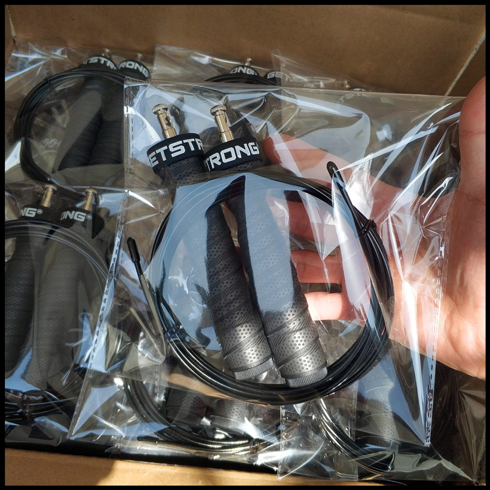Product material :PP handle +PU sweat absorption belt +PVC wire rope