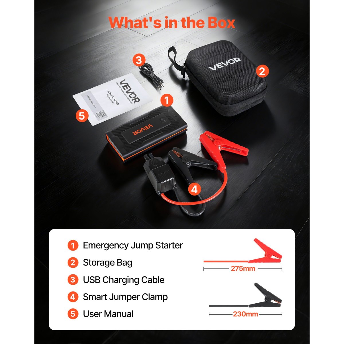 Enhanced Security Protection: Features 12 protections, including reverse polarity, spark-proof, overcharge, reverse charge, overcurrent, overvoltage, overload, short circuit, low/high-temp, etc. This car jump starter ensures secure operation every time