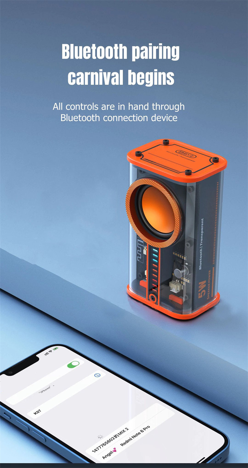 5. Delicate and Transparent - Bluetooth Wireless Speaker Made of clear acrylic and environmentally friendly ABS, beautifully designed.
