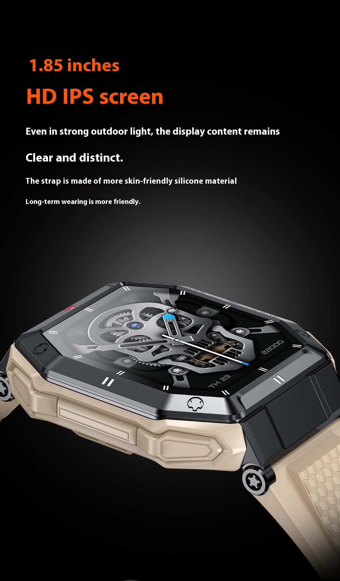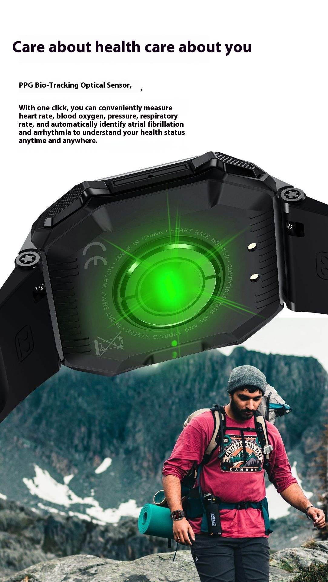 Functions: social entertainment, Bluetooth calling, smart reminder, remote control selfie, sleep monitoring, blood oxygen detection