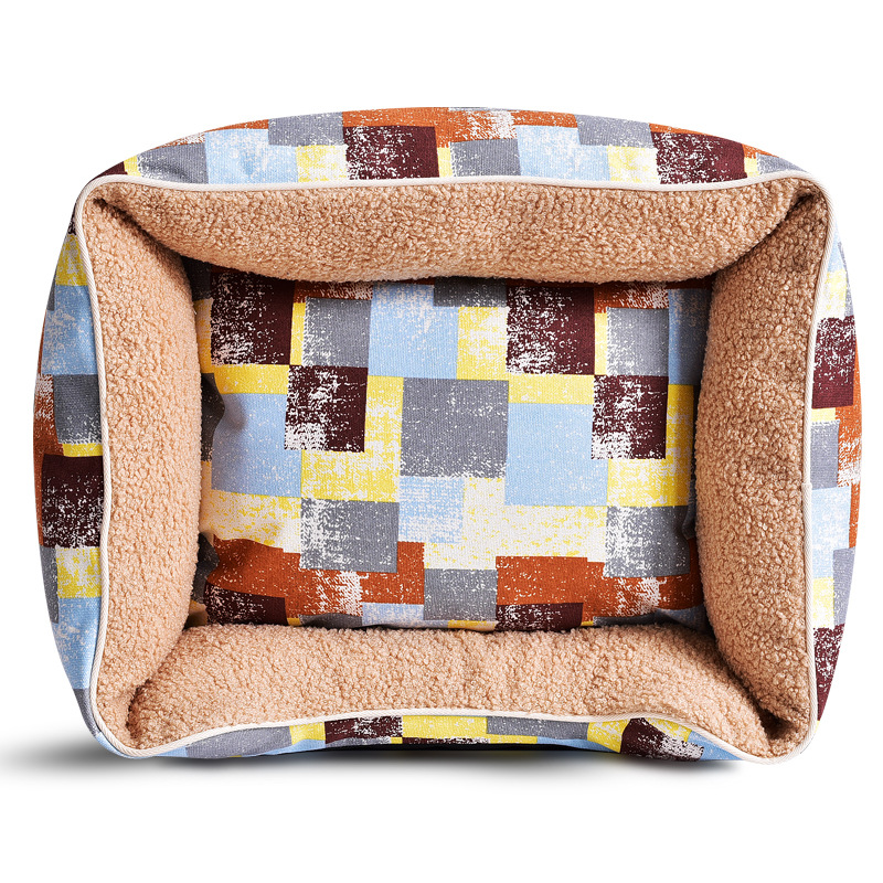 Color classification: cartoon square + dark gray yellow brown grid + beige cartoon square + light rice pink blue grid + light gray