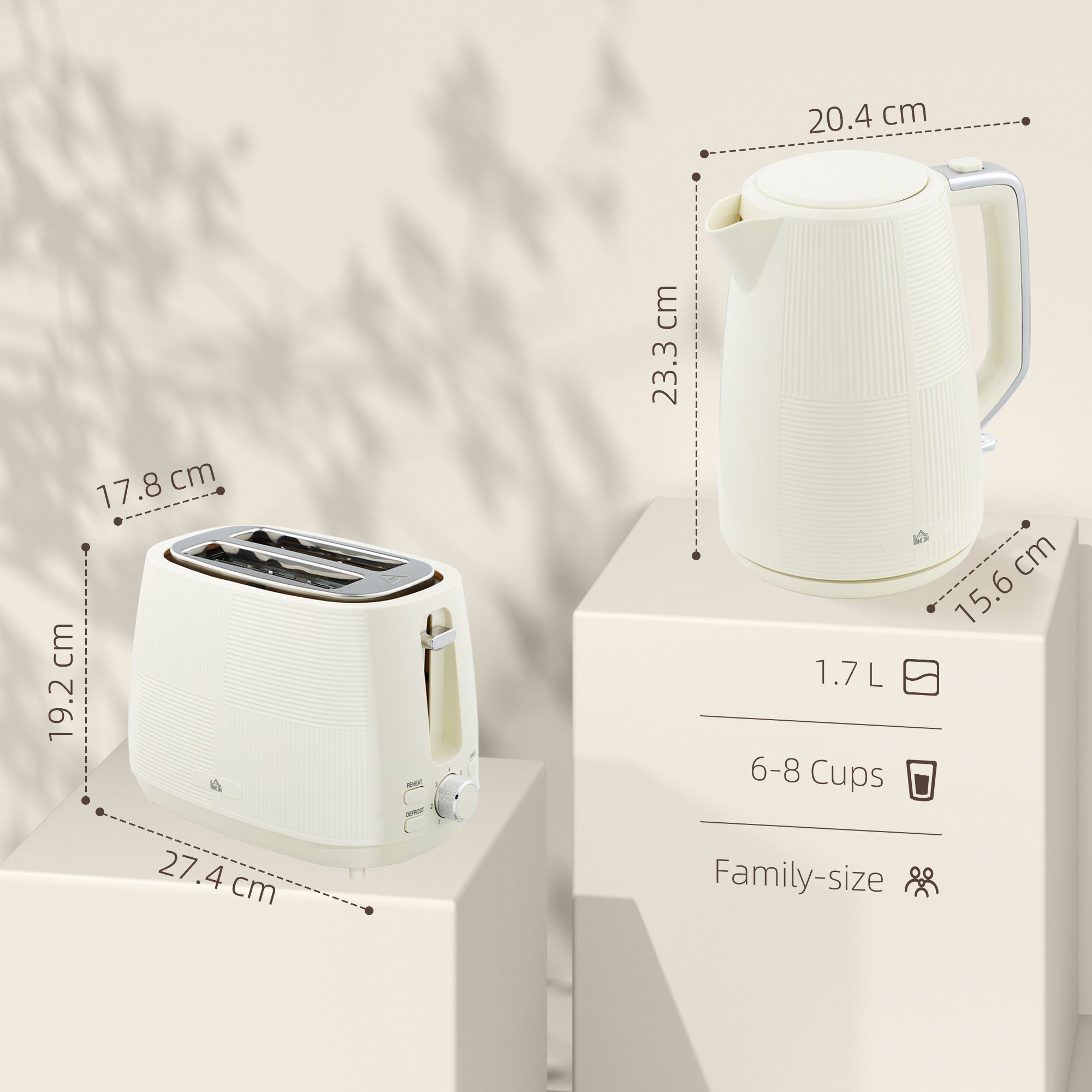 Elevate your morning routine with the Cream Kettle and Toaster Set. This chic, modern duo includes a 3000W electric kettle that boils a cup of water in just 42 seconds and a versatile toaster with reheat, defrost, and seven-level browning control. Both items feature safety auto-shutoff and are designed for easy use and cleaning, ensuring a seamless breakfast experience.