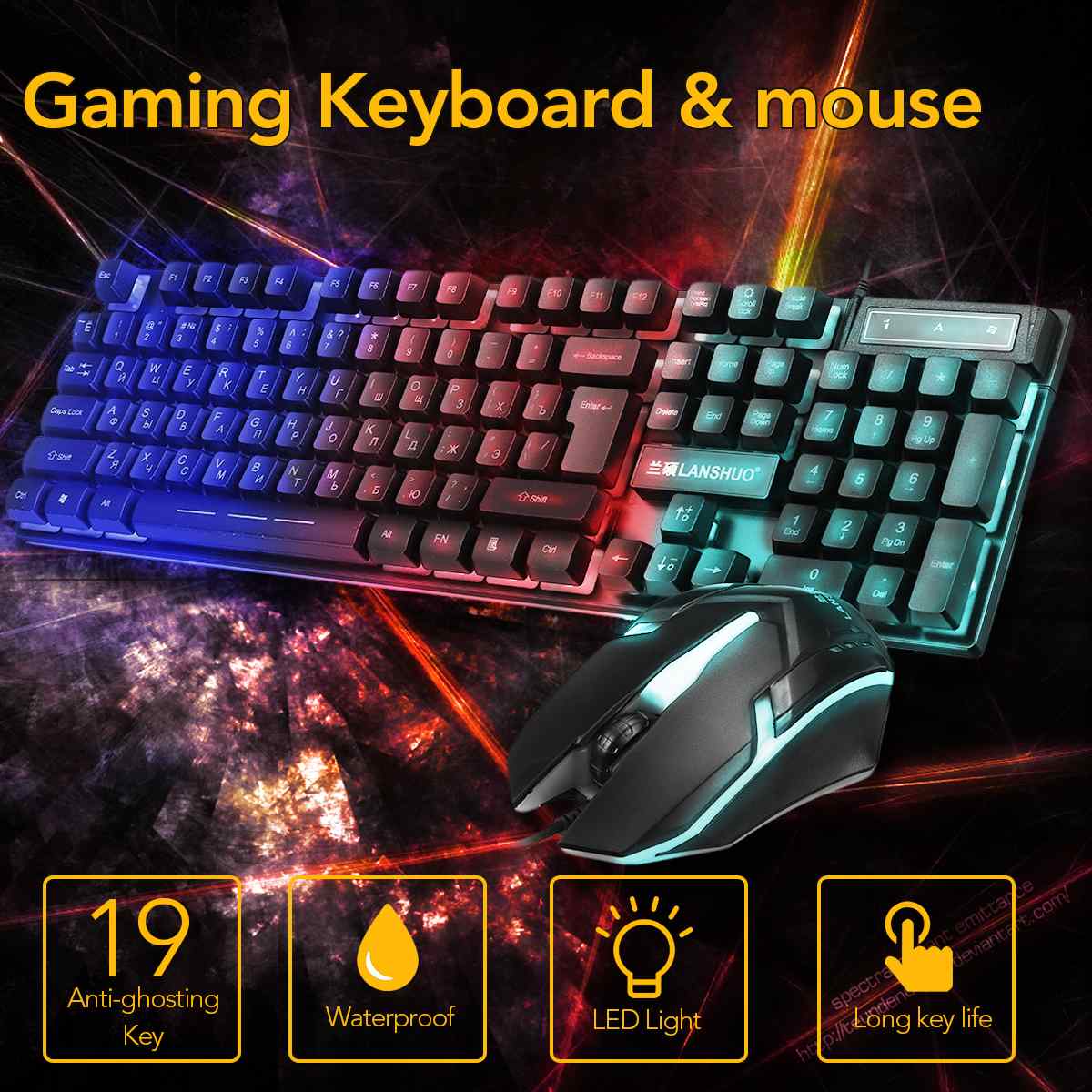 Russian USB wired backlit keyboaRussian USB wired backlit keyboard and mouse set
