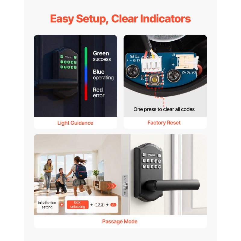 Customizable Access for Family & Guests: Our door handle with keypad supports 100 user codes and one-time PINs. It includes 2 backup keys, so there's no need for extra duplication, providing flexible access control for every situation