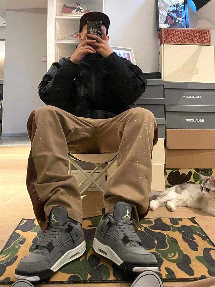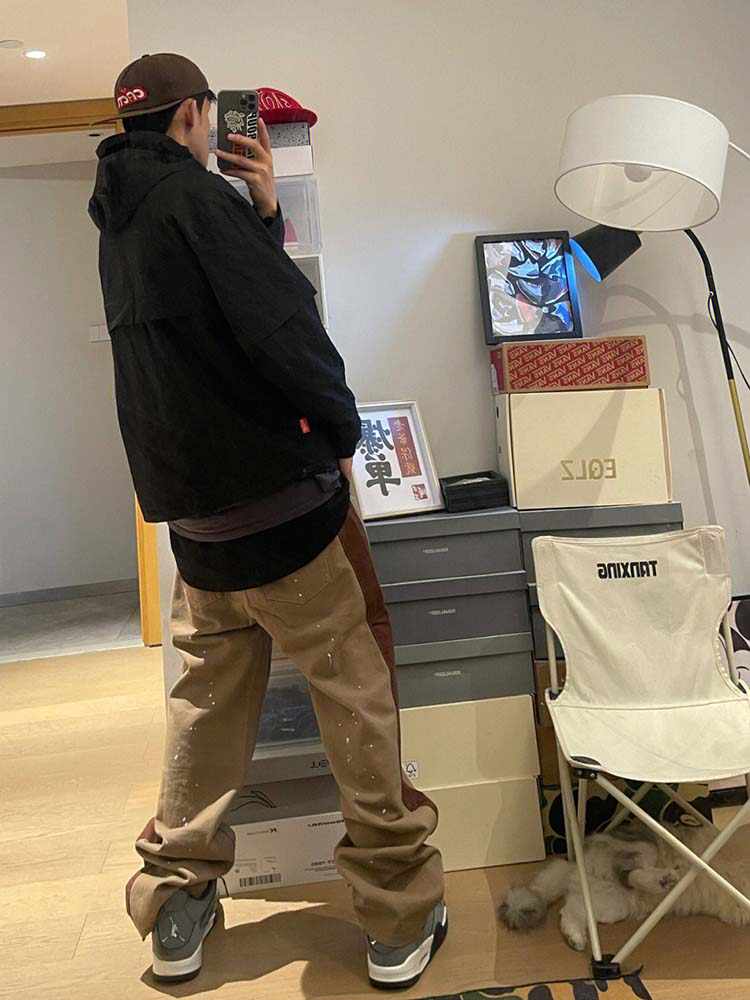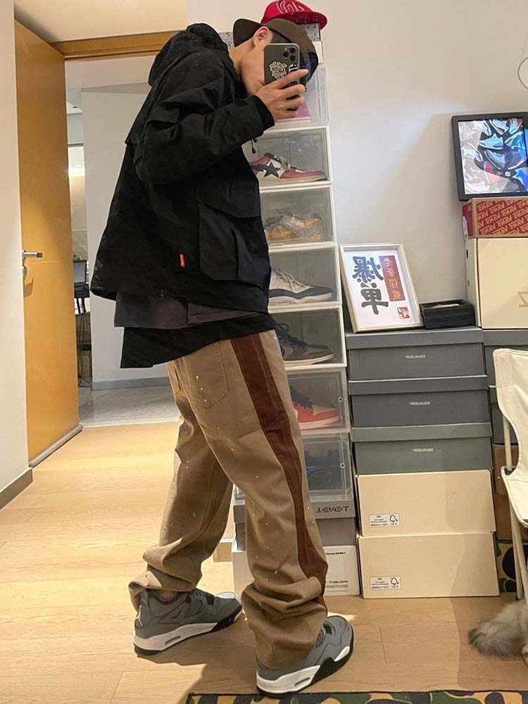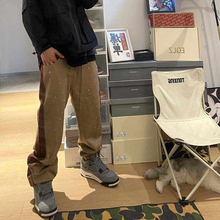 Khaki Colored Splashed Ink Design Pants