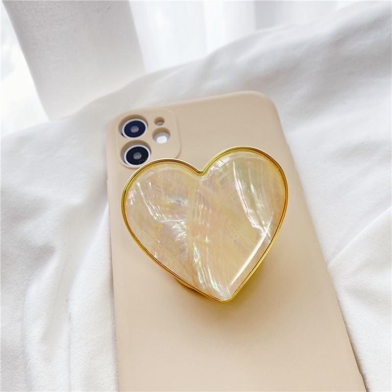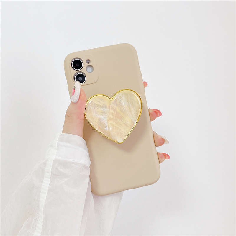 Popular Elements: Khaki Shell Pattern Love Heart Stand Phone Case