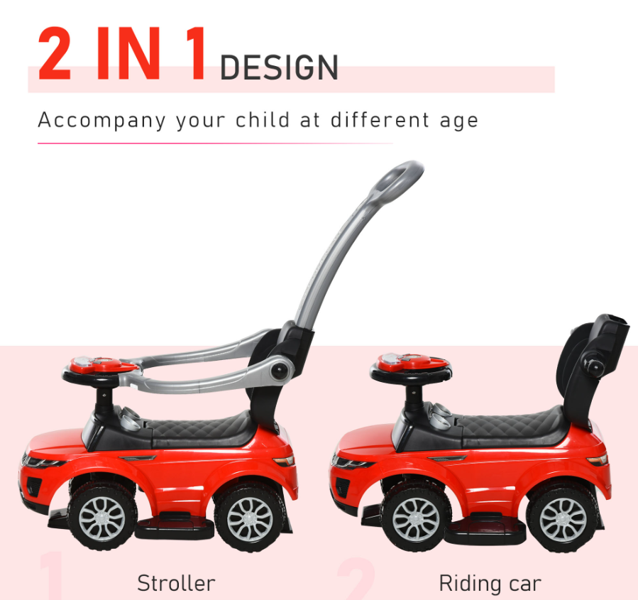 Kids 3 In 1 Push Car Ride-On Stroller Sliding Walking Toy With Horn Music Light Secure Bar For Boys Girls 1-3 Years Old Red