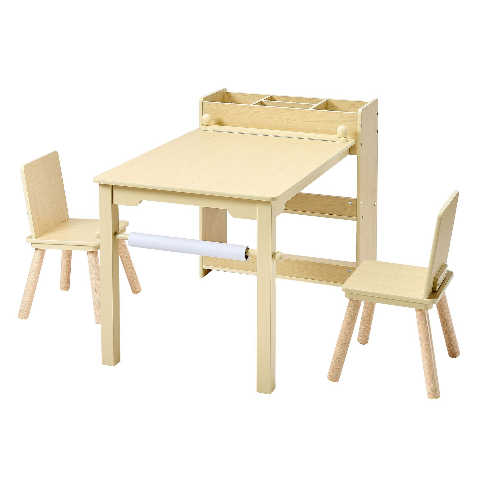 Kids Art Table And Chair Set, Toddler Craft Table With 3 Tiers Storage Cabinet, Wooden Kids Activity Play Desk With 2 Chairs, Craft Play Desk For Reading, Learning, Drawing, Writing, Light Wood