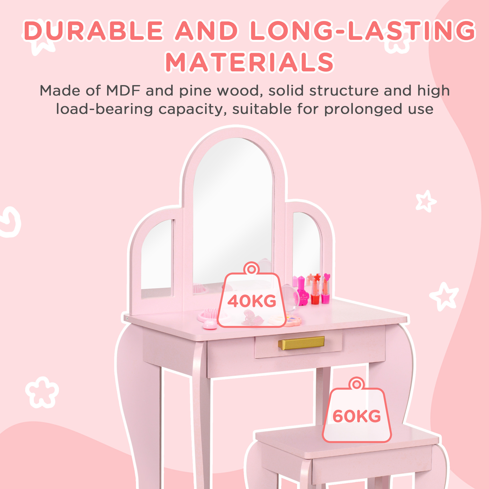 Transform your child's room into a magical space with the vanity table, designed for young explorers aged 3-6. This enchanting piece offers a safe and engaging environment for little ones to unleash their creativity—be it through makeup play, drawing, or imaginative games. Featuring three mirrors for morning routines and a spacious tabletop with a drawer for organization, it encourages independence. Crafted from durable MDF with smooth, rounded edges, it ensures safety while adding a vibrant touch to any room, making it a delightful addition for young families.