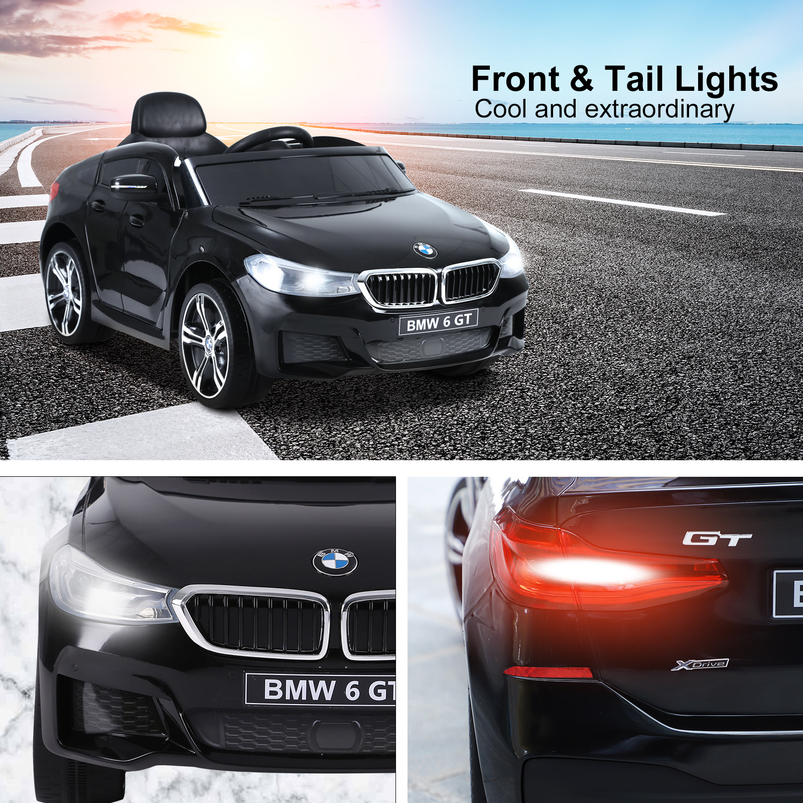 Get your little one out and about in the open and having lots of fun with this officially licensed BMW ride on car. In a sleek, black design inspired by the 6GT, it has been made with safety in mind, featuring extra wide tyres for a smooth ride, a seat belt and a double lockable door, ensuring they will be safe when riding. Operated by either the foot pedal and steering wheel or remote control, it can move forwards and backwards, with working headlights, rear lights and the ability to turn left and right. It’s able to play music via the TF card slot and USB connection, as well as making horn sounds. Made for children aged between three and eight, it is easily chargeable and a full battery provides up to 45 minutes of fun. You’ll never get them inside the house with this wonderful ride-on toy.\n