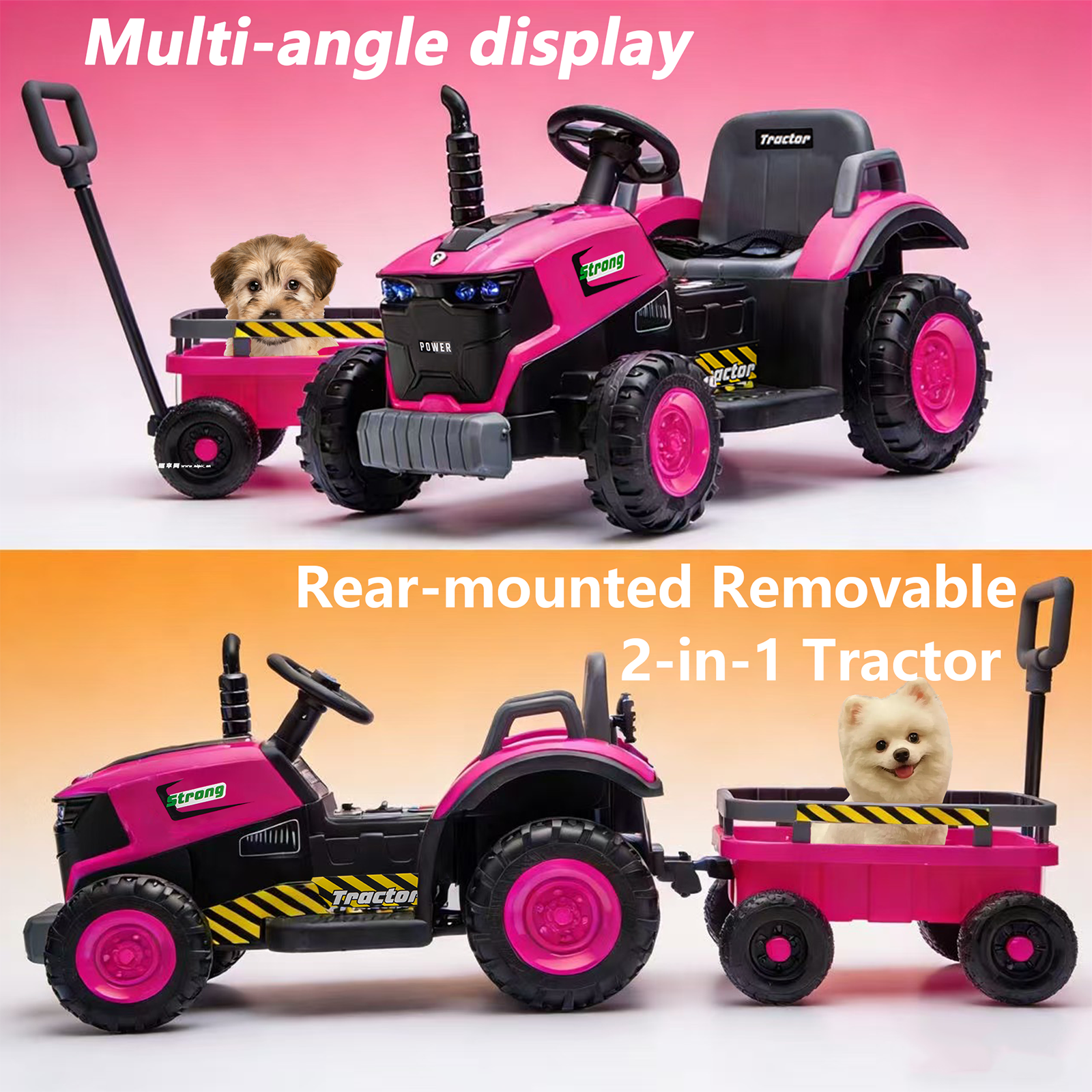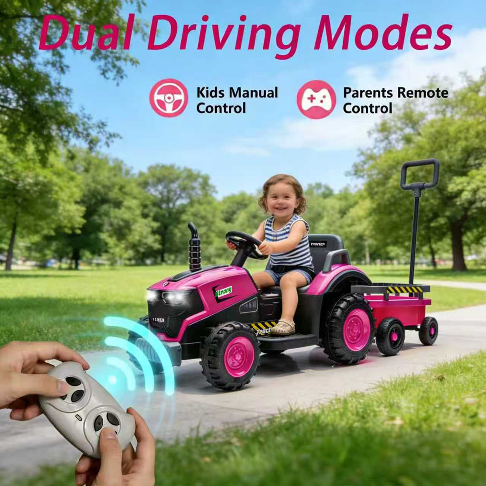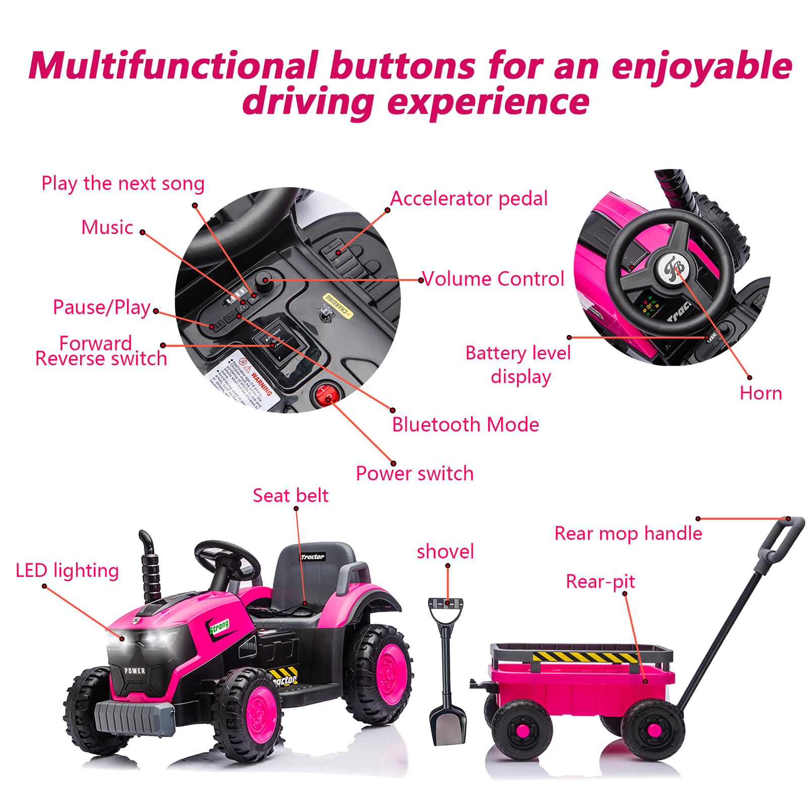 • [Upgraded 2-in-1 Ride on Tractor]: Crafted with meticulous design unique 2-in-1ride on tractor with music and light is finally here! From its exquisite and cool exterior to every detail and feature, it promises an authentic ride on tractor riding experience for you and your kids.