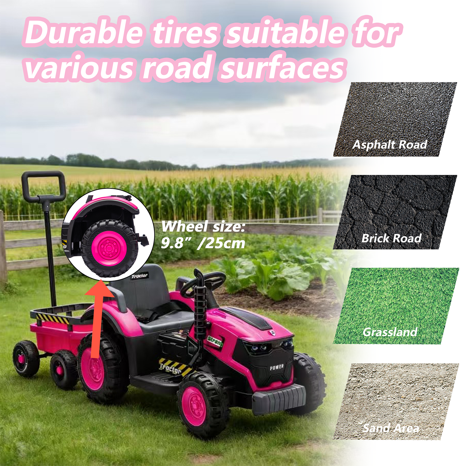 • [ASTM & CPSIA Certified] This kids' ride-on tractor is fully certified by both ASTM International and CPSIA (Consumer Product Safety Improvement Act), meeting the strictest safety standards for children’s toys. It undergoes rigorous testing for toxic substances, structural stability, and small parts (to prevent choking hazards), ensuring every detail—from the smooth PP material to the secure button design—is safe for kids.