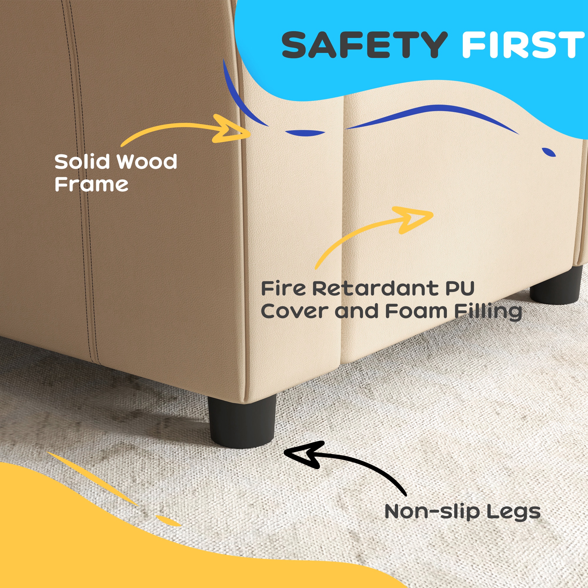 Kids Recliner Chair, PU Leather With Adjustable Backrest, Footrest, Padded Headrest, Beige