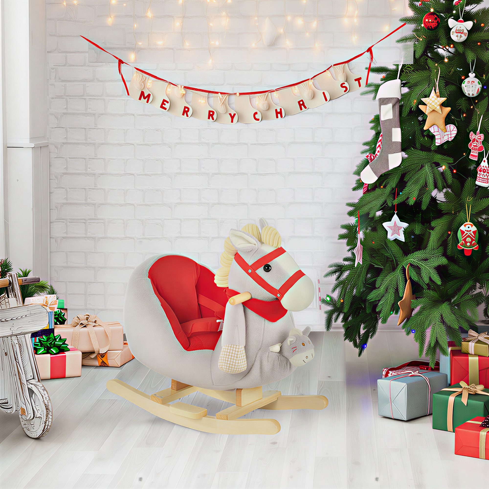 Finally, with our Qaba plush rocking horse, there's a riding toy that's sweet enough for your little sweetie! Playtime needs to be comfortable, which is why we lined the wooden frame of this kids rocking chair with soft plush. Speaking of that wood, we use it to be sure everything is secure and sturdy so your child can play with ease and peace of mind. For even more fun, just squeeze the ear and have this rocking toy sing you a song! Check out our rocking horse and let your kids have the time.