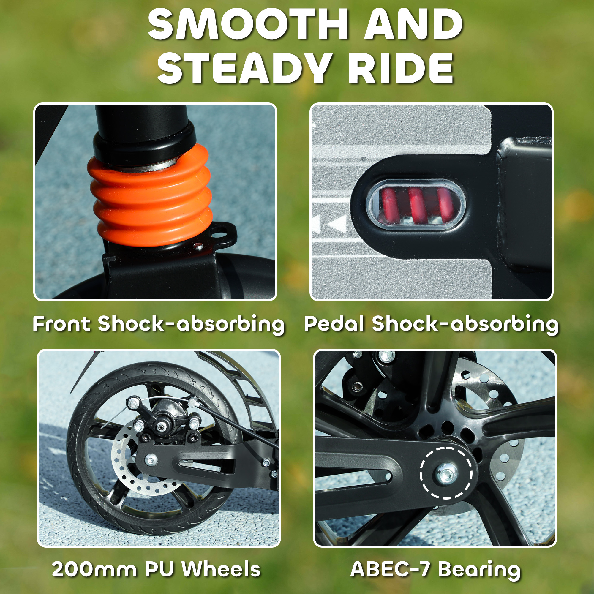 Enjoy scooting adventures with the kids scooter! Designed to grow with your child, its adjustable handlebars make it great for ages 6-12, keeping optimal comfort. With front and rear brakes for safe stops and a double shock absorption system for smooth rides, this scooter promises safe and enjoyable play. Plus, it folds easily for hassle-free transport and space-saving storage. Outdoor fun awaits, adding more excitement to playtime!