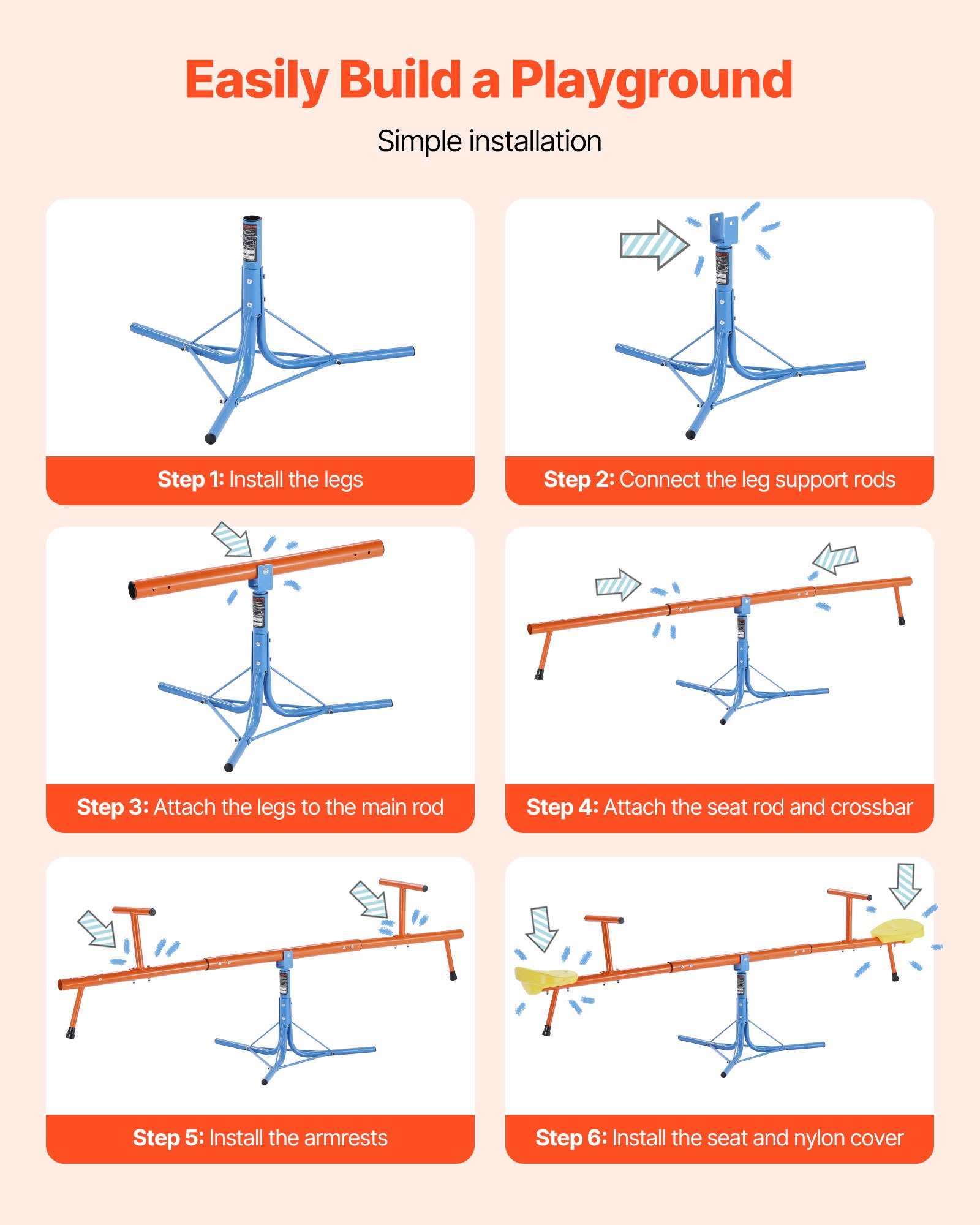 Durable & Weather-resistant: Made from carbon steel with a powder coating, this kids teeter-totter supports up to 100 lbs / 45.4 kg per seat. It's waterproof and rust-resistant, ensuring durability for years of play, rain or shine