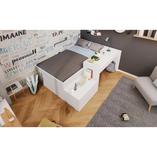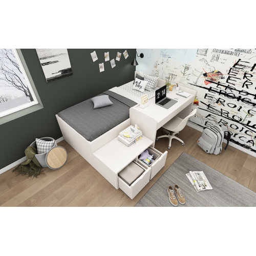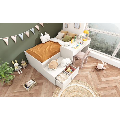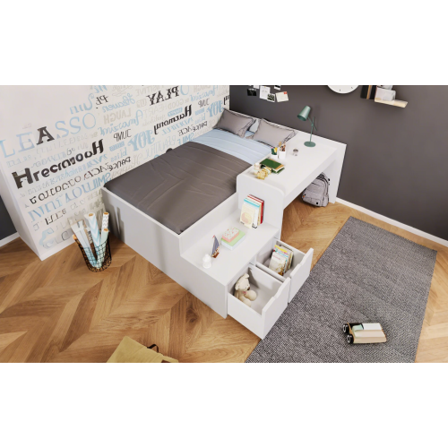 Product Name:Kids Single Bed with Desk and Drawers, 90 x190 cm, White, 3ft Kids Wooden Bed with Storage, Single Bed with Slatted Frame, Lying Surface for Teenagers & Adults (No Mattress)