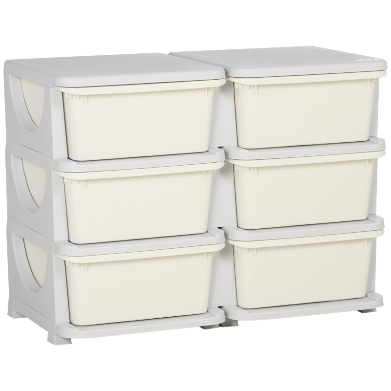 Organise your child's space with 's storage boxes. Featuring six drawers, there's lots of room for toys, books, clothes and more, keeping a tidy, clutter-free room. Made from stable PP material, it has a smooth surface for easy cleaning and rounded corners for safety. The base with stump feet keeps it upright and balanced to prevent accidents. Suitable for ages 3-6 years, it encourages independence as children can access and store their own things.