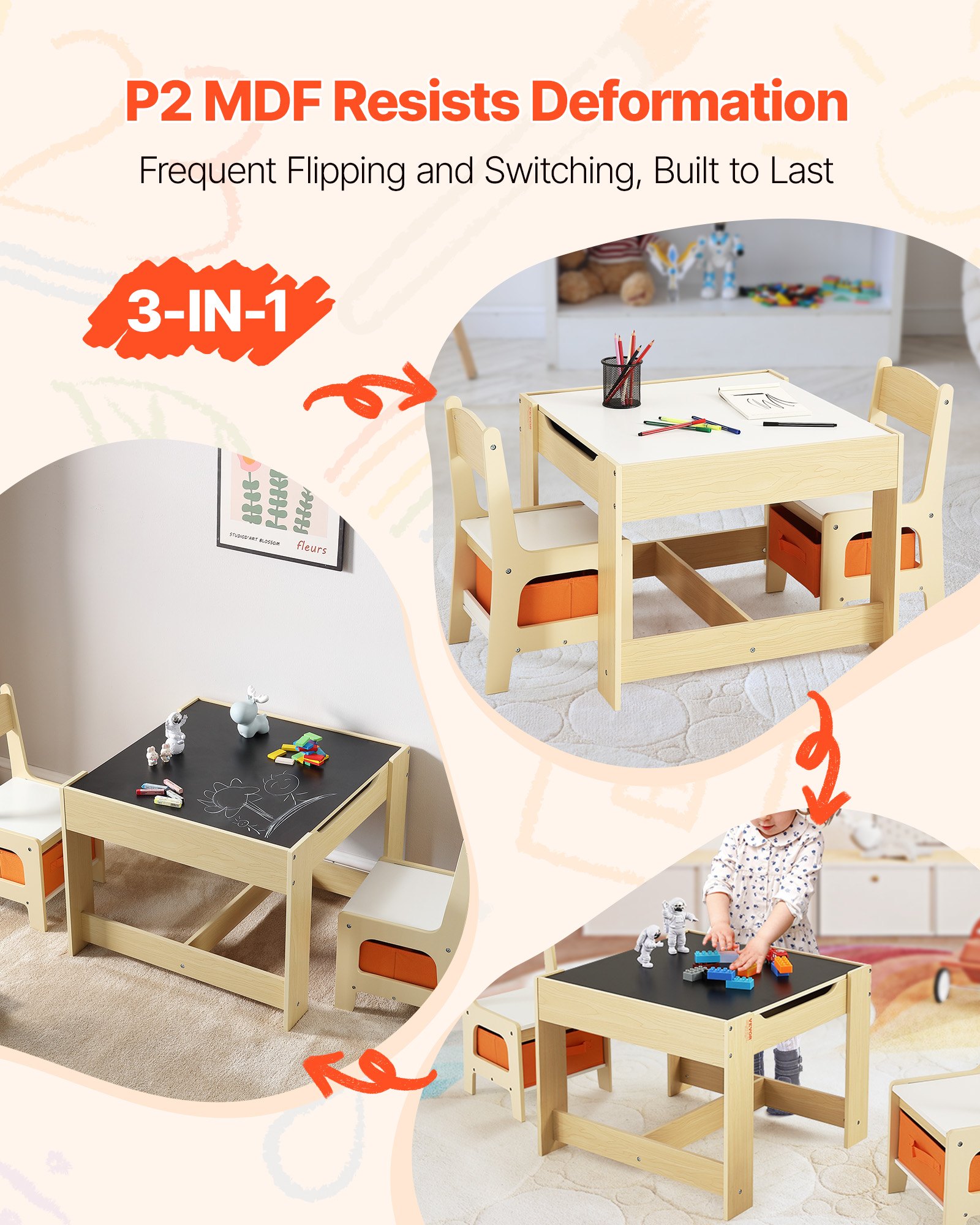 Multiple Storage Areas: This kids table and chairs feature storage under the table and in the chair with lightweight non-woven fabric box, large openings and bright colors to engage children, helping them develop tidy habits while keeping items organized