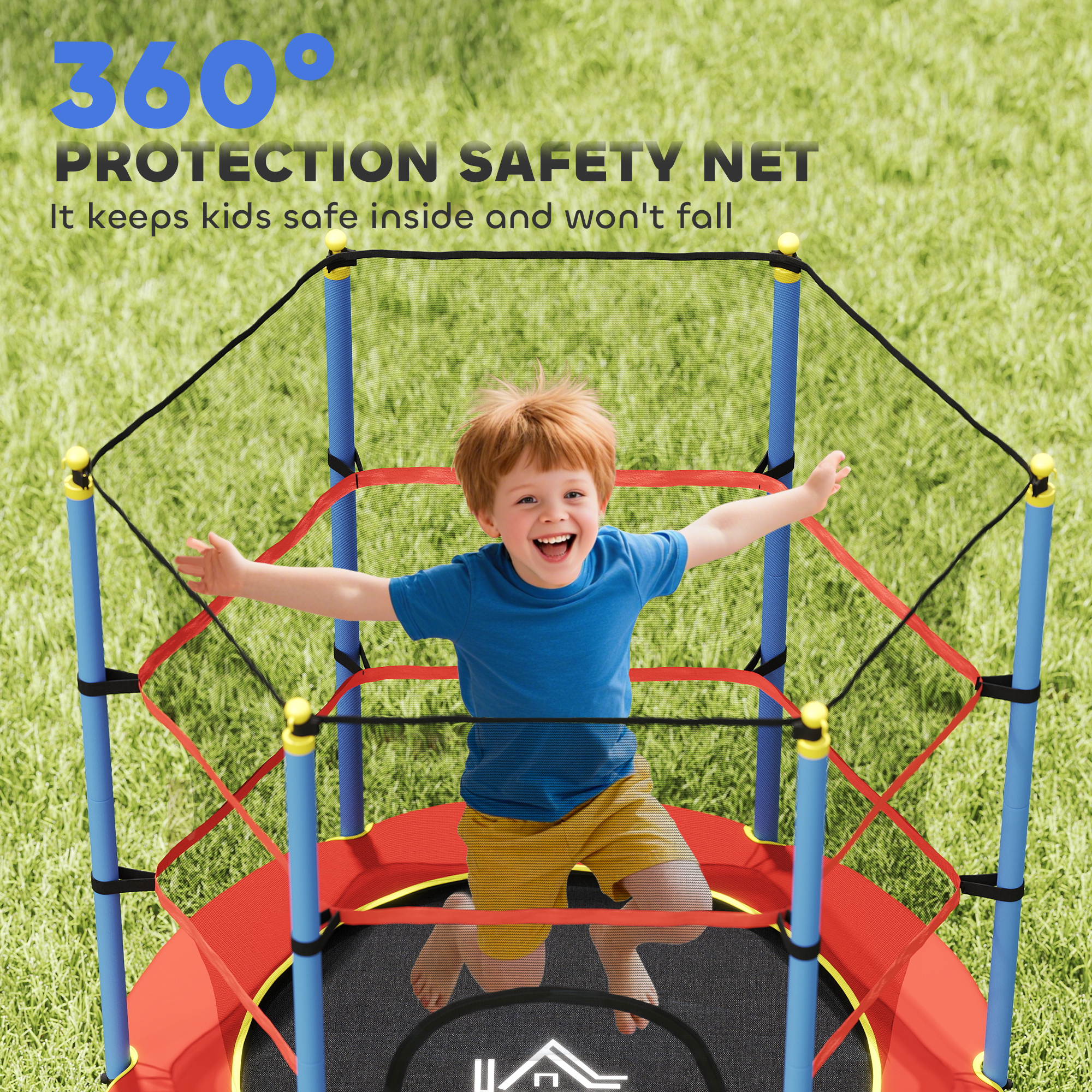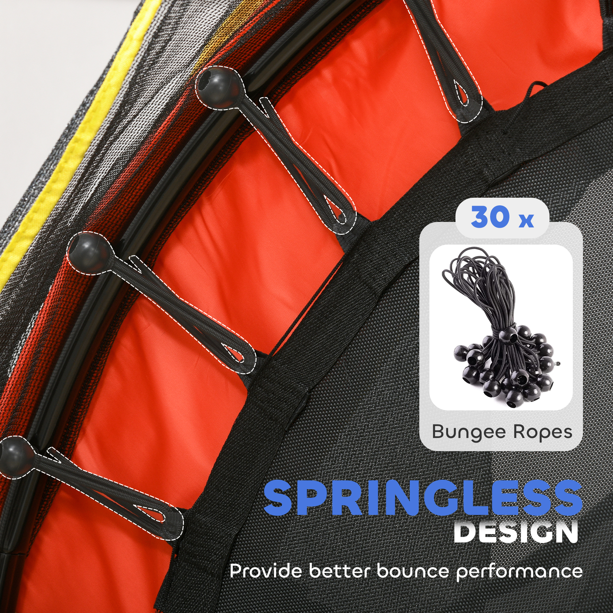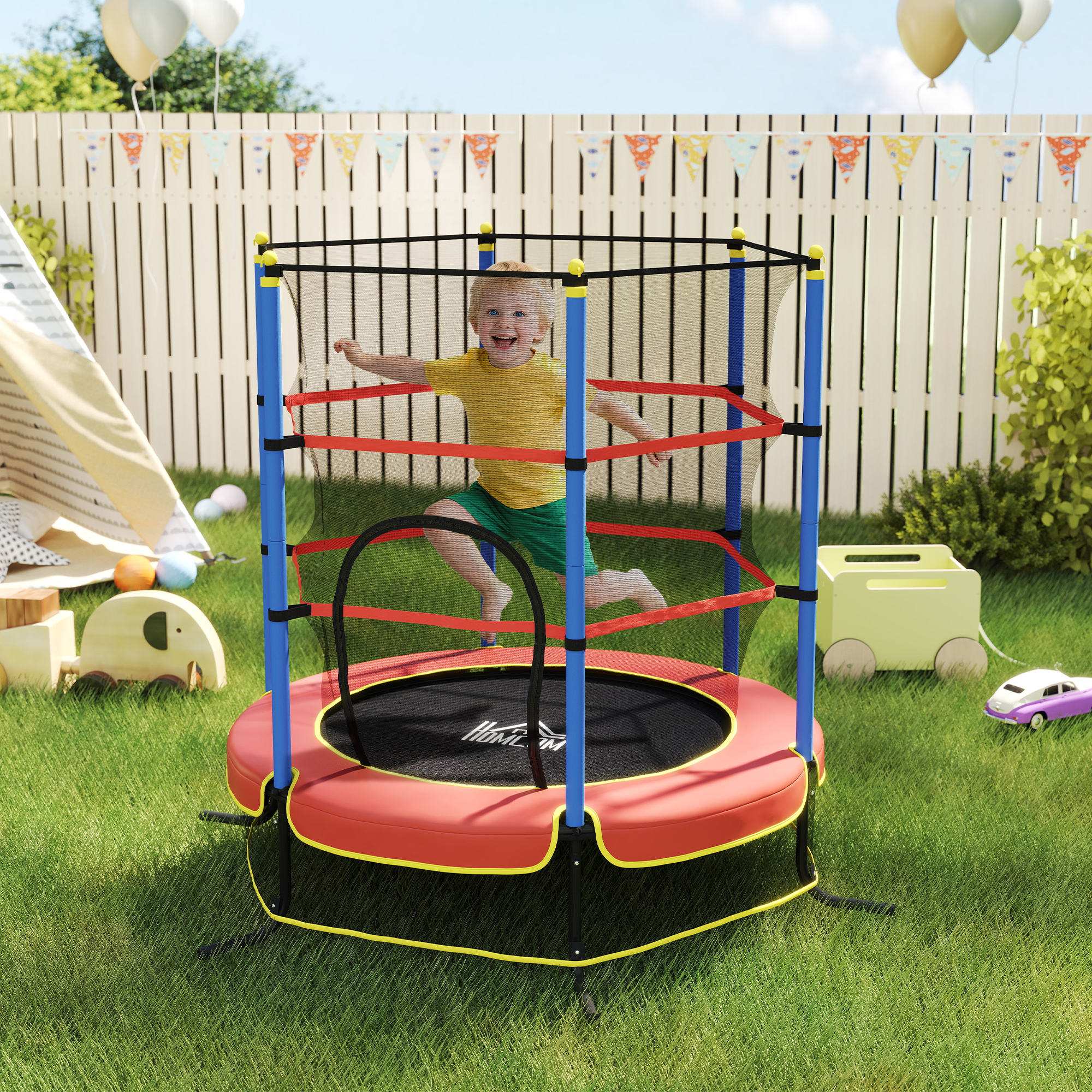Bounce all day – this trampoline keeps kids happy and active. Made with powder-coated steel, it's a robust formation, staying in shape when in use. Surrounded with a safety net and padded poles, they will not fall off as they play. There aren't any springs included, so children are less likely to hurt themselves when jumping up and down. It's easy to carry and move – set up anywhere and let the fun begin. Suitable for indoors and outdoors.