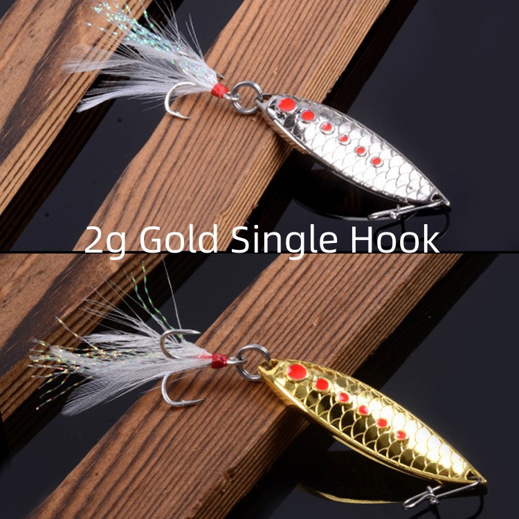 Specifications: 2g Gold Single Hook, 2g Silver Single Hook, 3g Gold Single Hook, 3g Silver Single Hook, 10g Gold Blood Groove Feather Hook, 10g Silver Blood Groove Feather Hook,