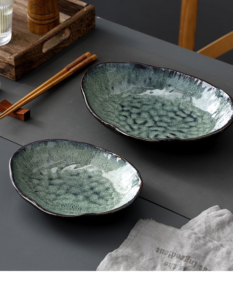 Color classification: Ocean Blue-9.5 inch relief ingot plate (large size), Ocean Blue-7.2 inch relief ingot plate (small size), fog Green-7.2 inch relief ingot plate (small size), fog Green-9.5 inch relief ingot plate (large)
