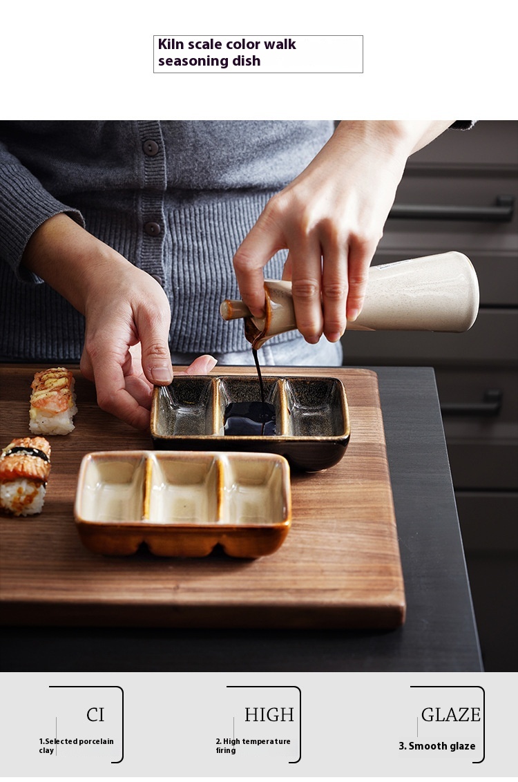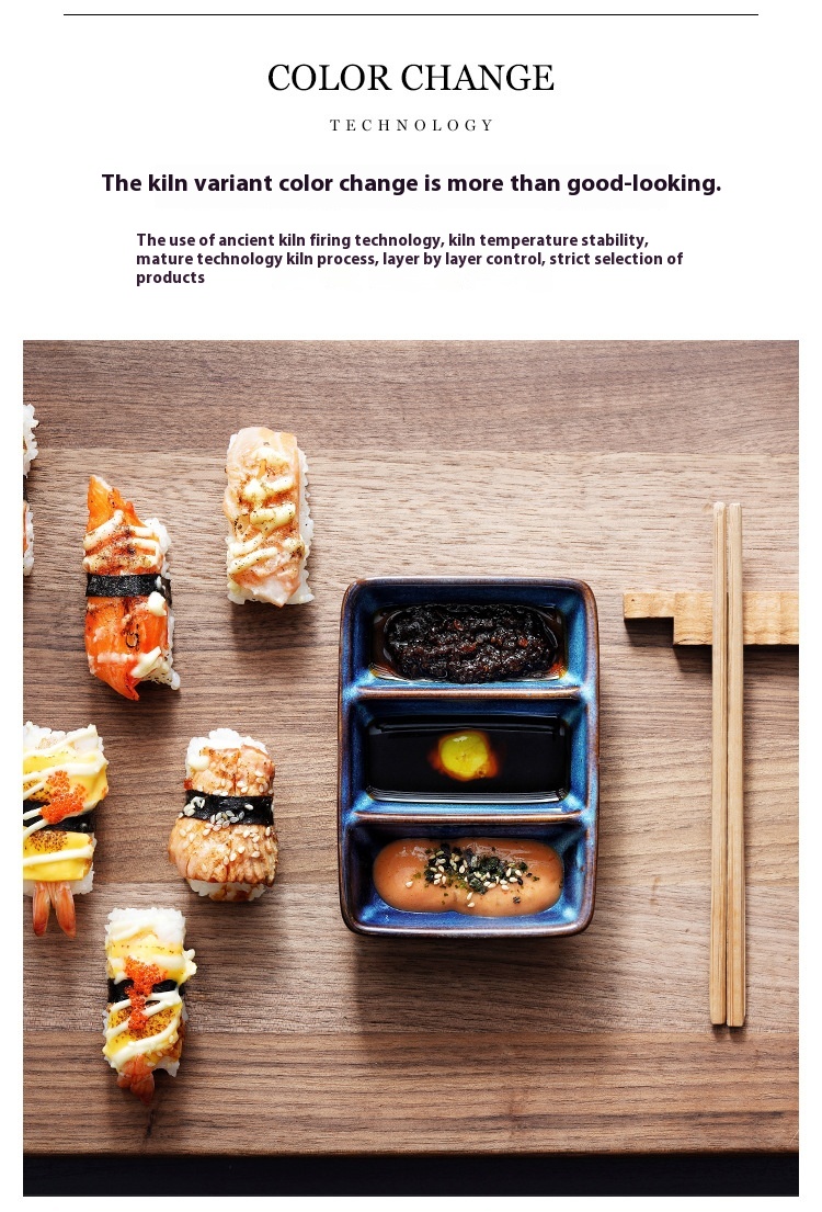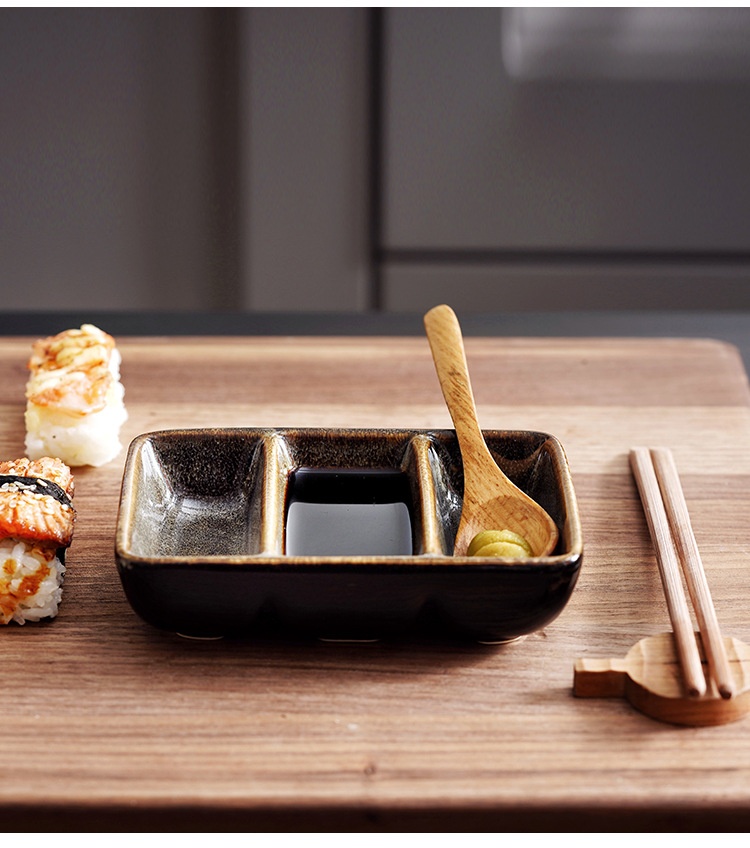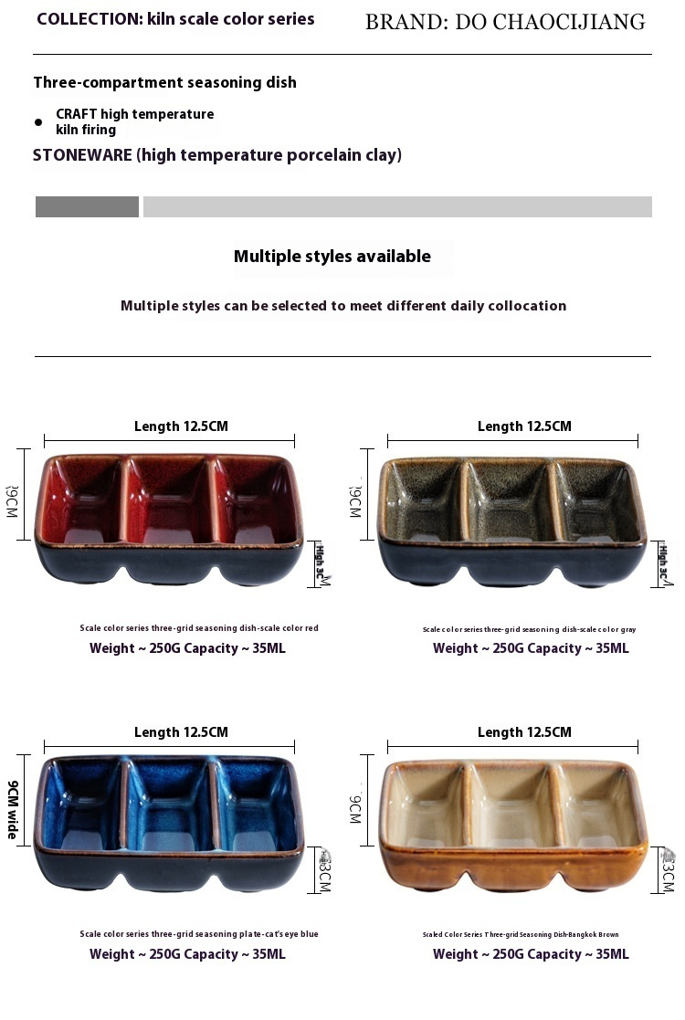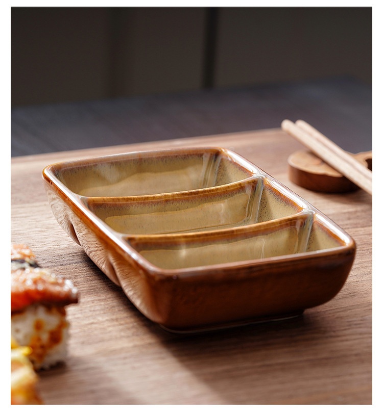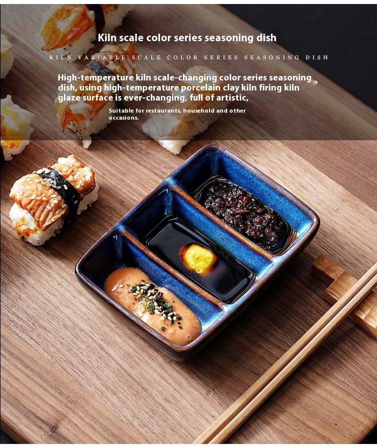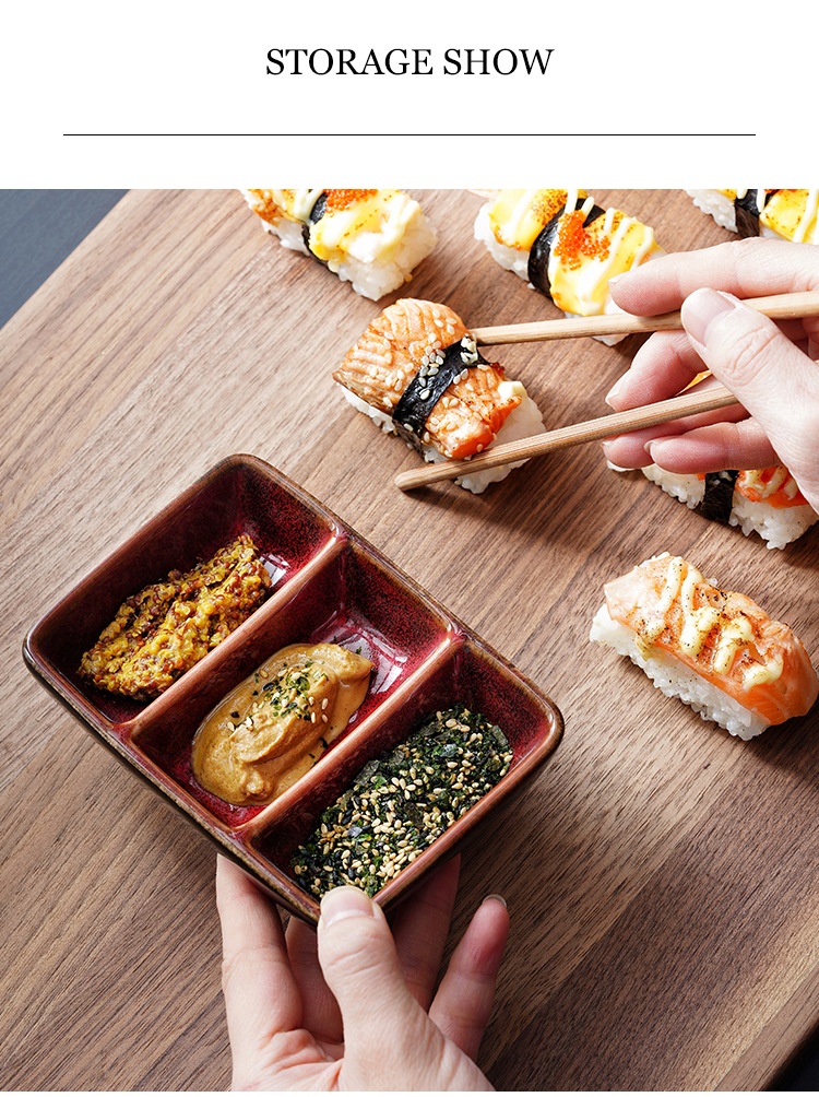 Color: scale color red-three grid sauce dish, scale color gray-three grid sauce dish, Bangkok Brown-three grid sauce dish, cat eye blue-three grid sauce dish