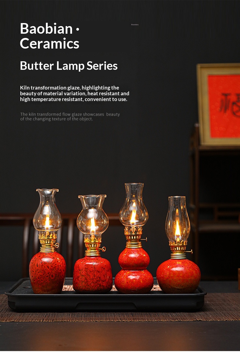 Color: Wooden Mallet Butter Lamp—Kiln-Changed Red, Gourd Butter Lamp—Kiln-Changed Red, Oil-Drop Butter Lamp—Kiln-Changed Red, Lantern Butter Lamp—Kiln-Changed Red