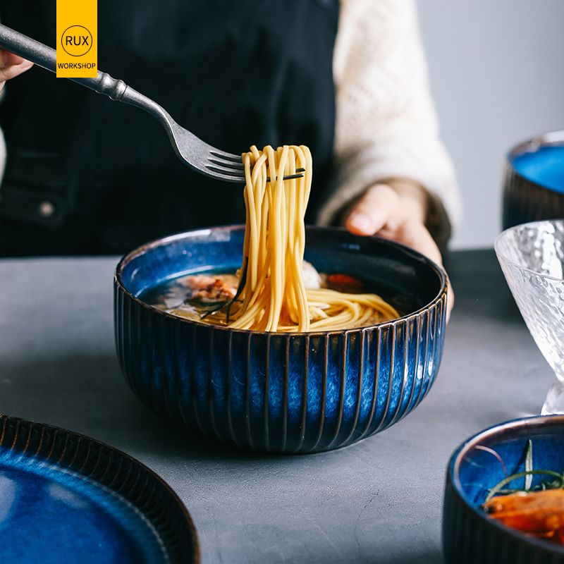 Kiln Turned Blue Ceramic Tableware Noodle Bowl