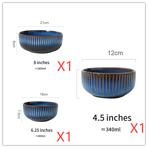 Color: 4.5 inch striped bowl, 5 inch striped deep plate, 6.25 inch striped bowl, 7 inch striped flat plate, 8.5 inch striped flat plate, 8.5 inch striped deep plate, 8 inch striped bowl, 10.5-inch striped flat plate, 10.5 inch striped Deep dish