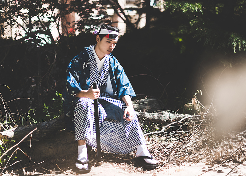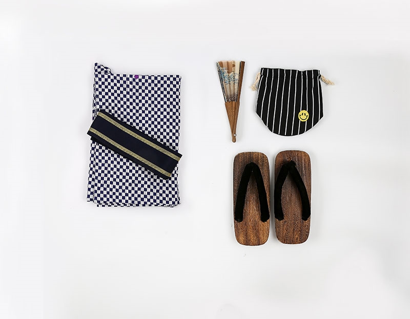 Kimono + BELT + false collar + shoes and socks + Handbag + headscarf