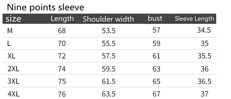 Color classification: Black seven-point sleeve-thin black nine-point sleeve-thick