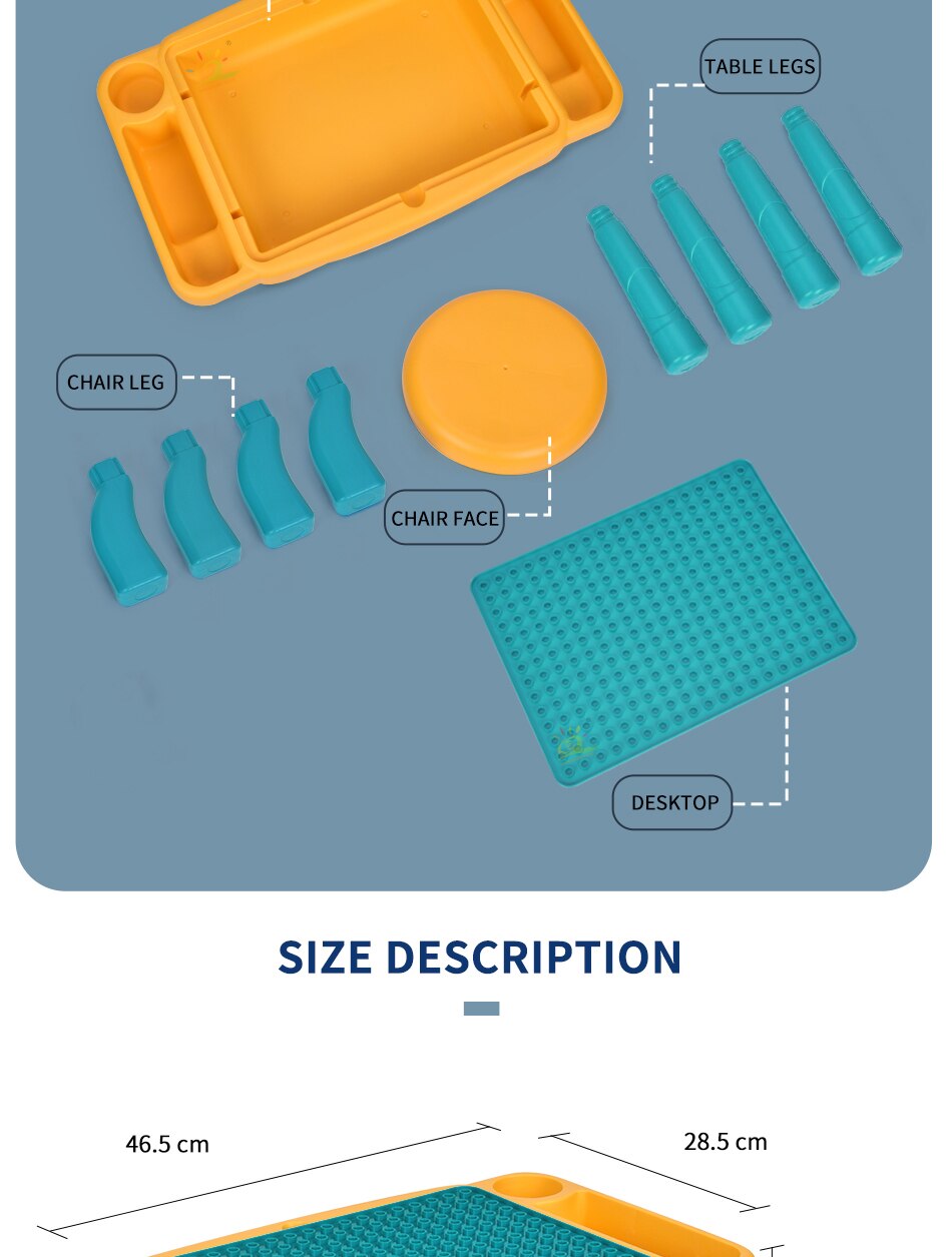 A: Large particles 1 table + 1 chair
