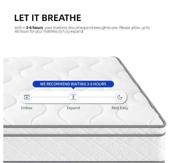 【ARRIVES IN A BOX】: Made in the USA, the mattress arrives compressed and rolled in a box for easy transport and setup. Simply unbox, unroll, and allow up to 48 hours for full expansion, and enjoy quality comfort right at home.