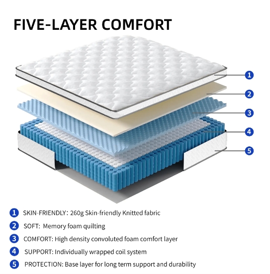 【ENHANCED SLEEP COMFORT】: This medium-firm 10 inch king-size mattress, with its 5 - layer design, effectively supports users of different weights and sleeping positions. The medium - firmness is carefully calibrated to provide just the right amount of support, making it an outstanding option, especially for those in pursuit of enhanced lumbar support. It helps maintain the natural alignment of the spine and alleviates pressure points, thus ensuring a more restful and comfortable sleep experience.